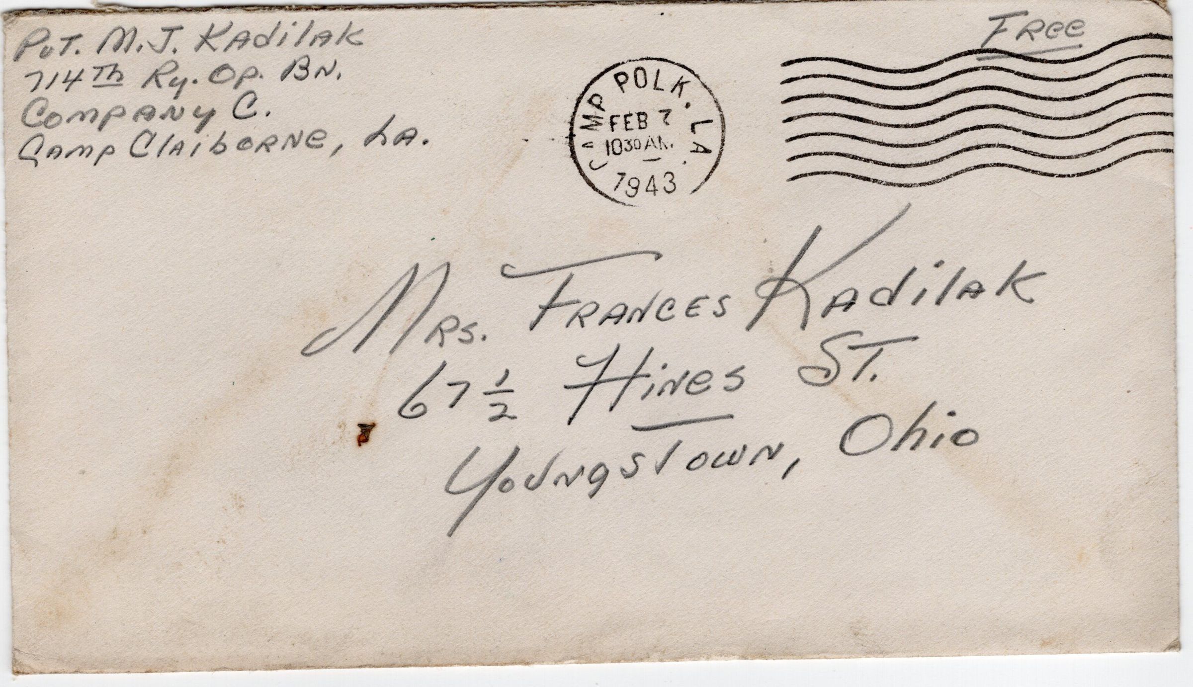 Camp Claiborne Letter from Pvt. M. J. Kadilak