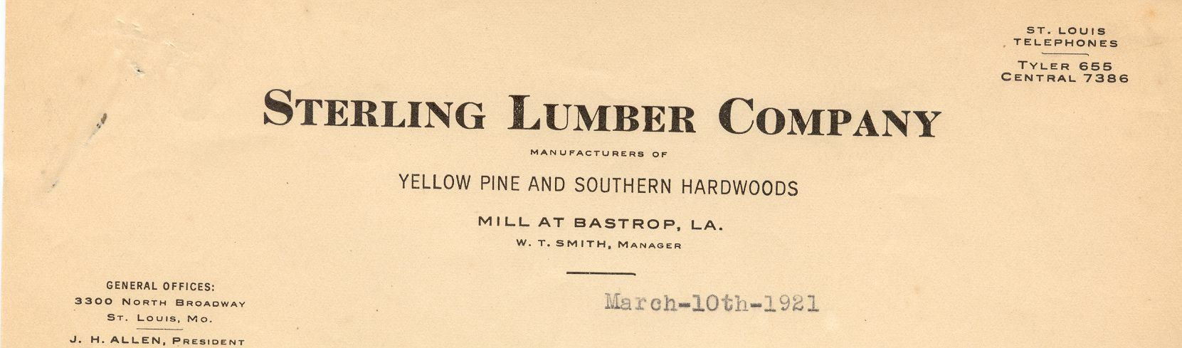 Letterhead from Sterling Lumber Company March 10, 1921Context