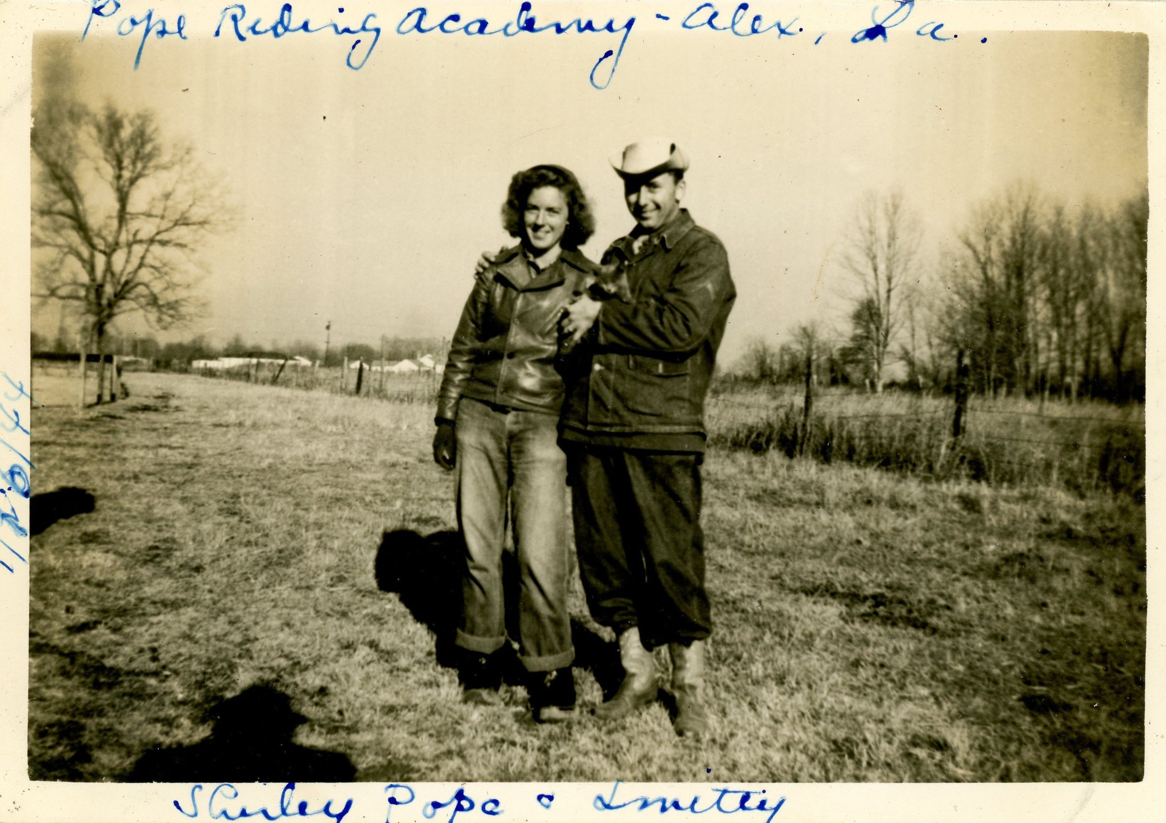 Shows Shirley Pope and Smitty at Pope Riding Academy, Alexandria, Louisiana, January 16, 1944Photograph Details