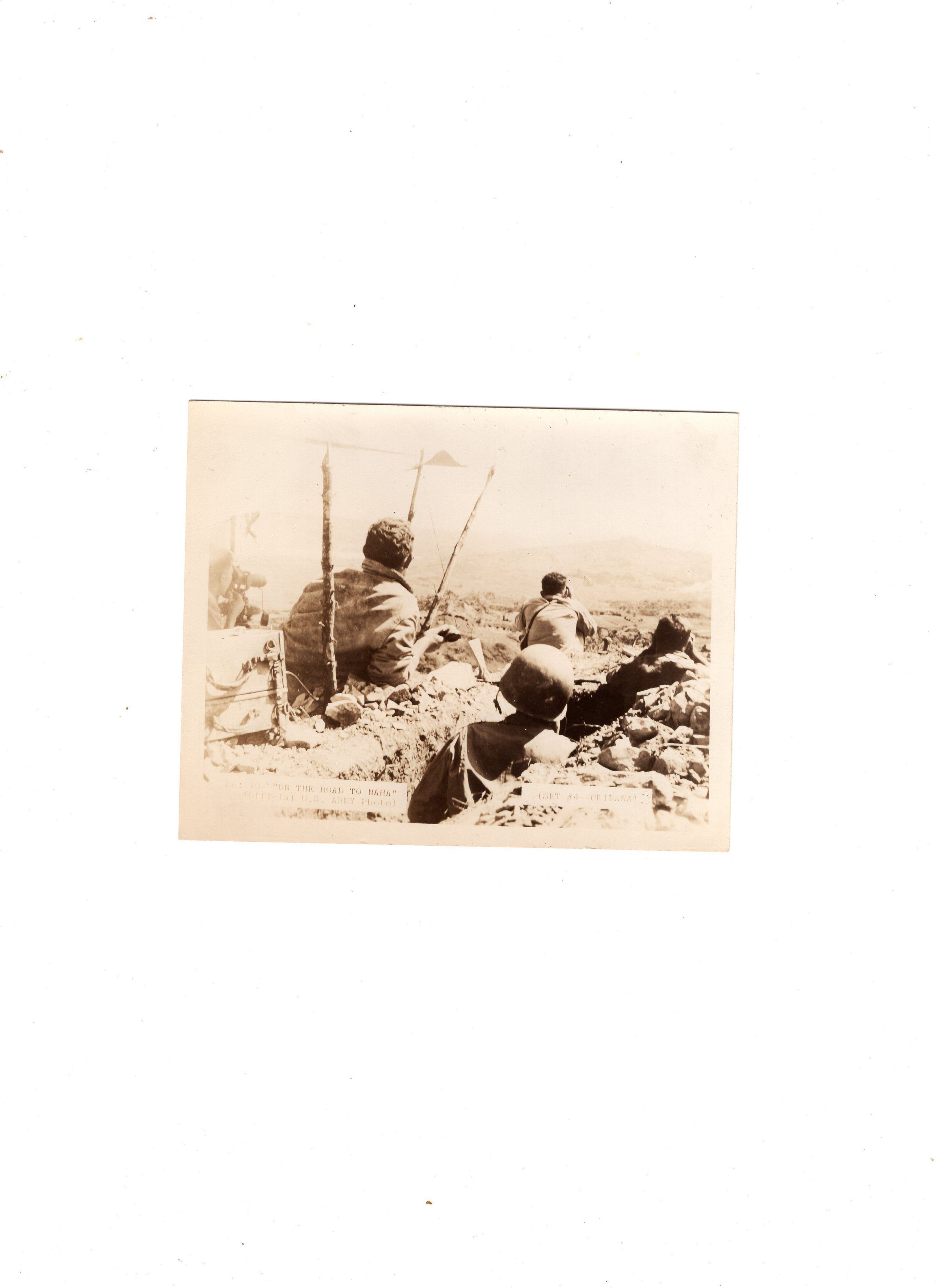 Soldiers on Okinawa sitting on ground and observing during the Battle of Okinawa in World War IICollection