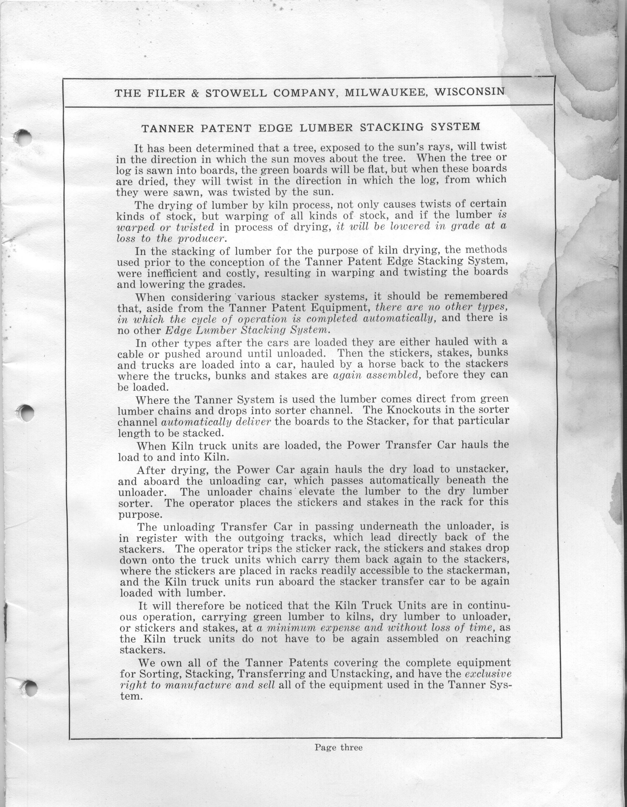 Filer & Stowell Tanner Patten Edge Lumber Stacking System pg1 (thru) pg28Other Numbers