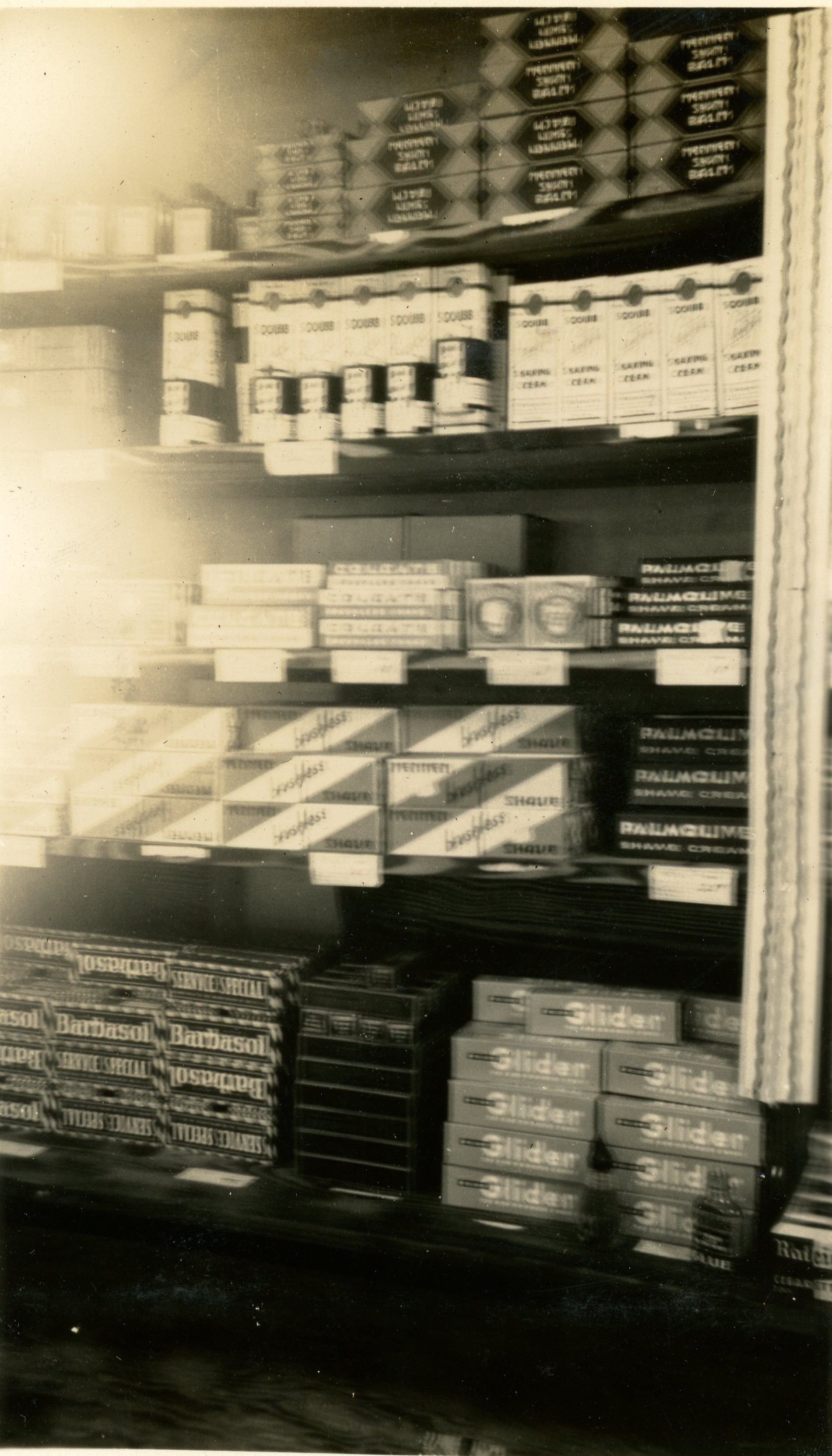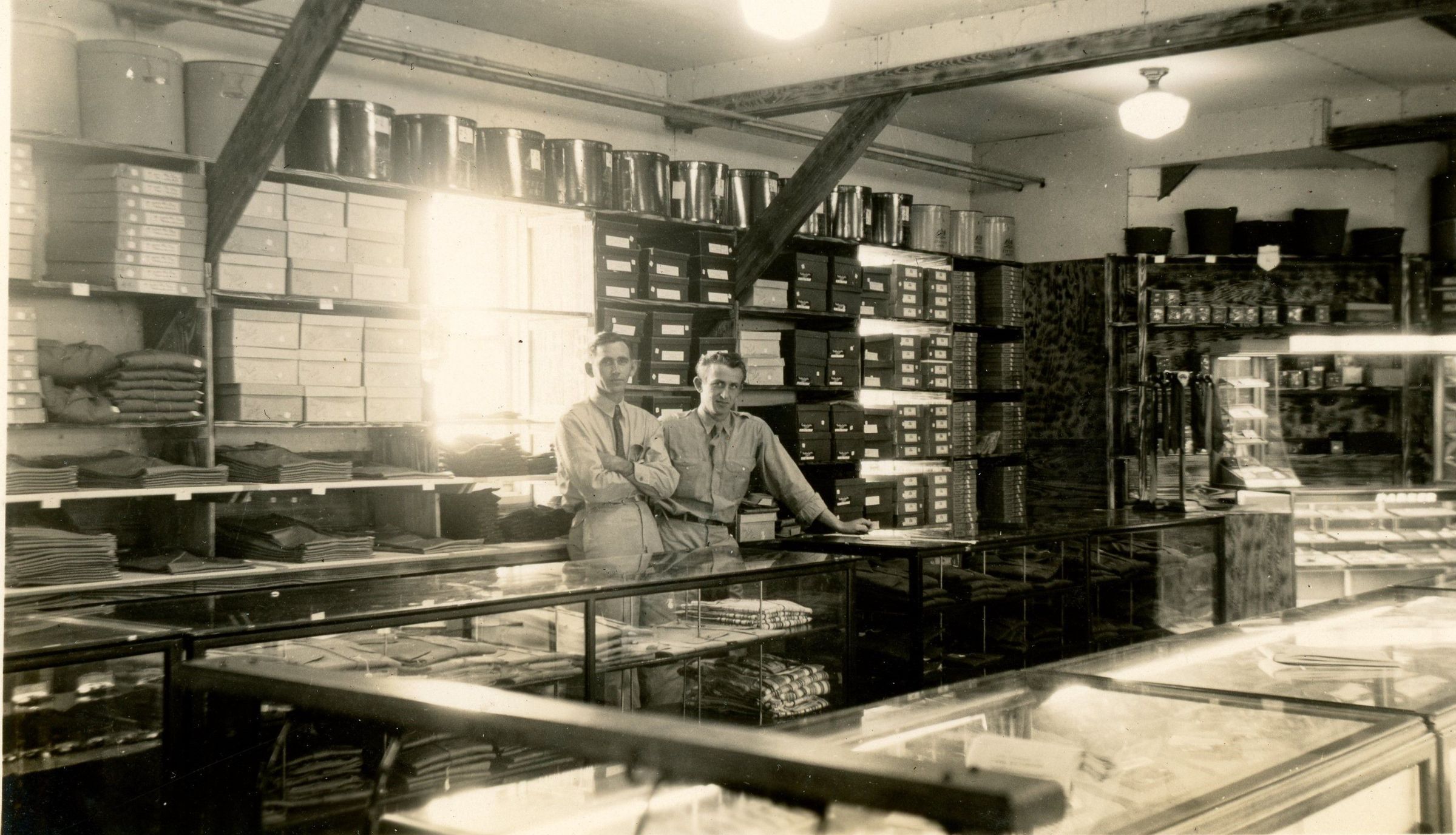 Depictions of the varied selection present for those who resided in Camp Claiborne. Two employees sit behind the counter posed for the photograph.Collection