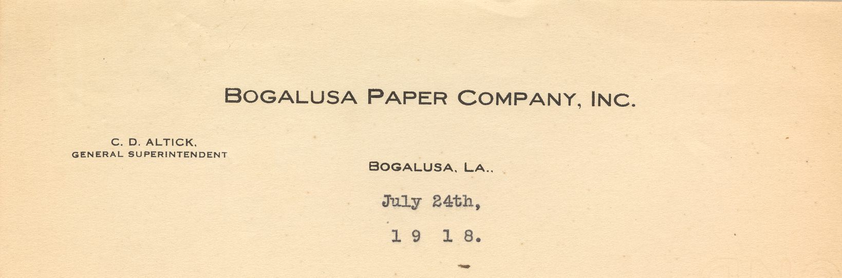 Letterhead from Bogalusa Paper Company, Inc. July 24th, 1918.Context