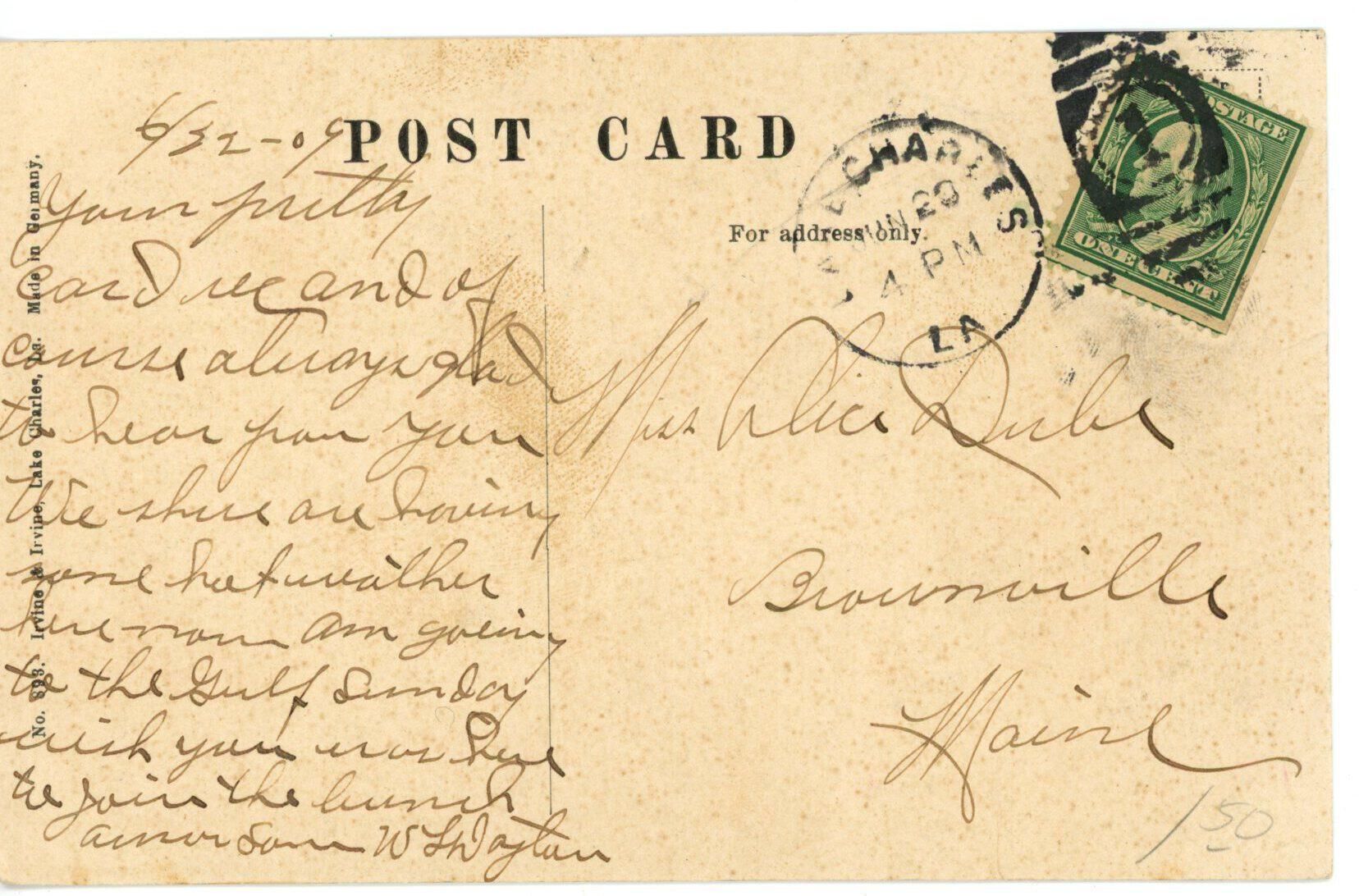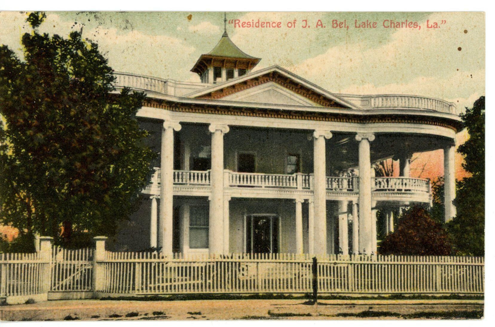 colorized snapshot of the Residence of J. A. Bel in Lake Charles; from W. L. Dayton to Miss Alice on Jun 29 1909Collection
