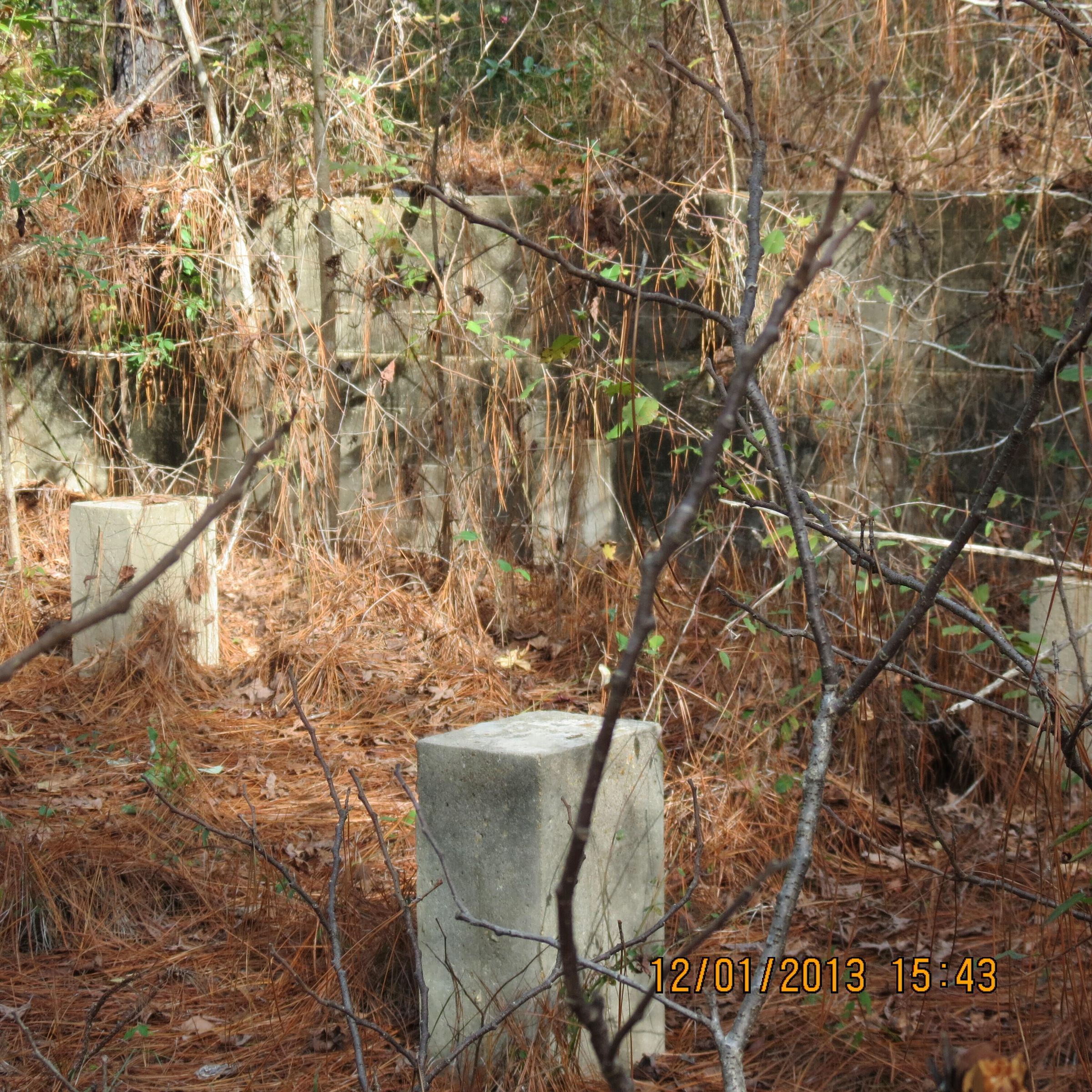 ruins of the chapel at the POW camp at Camp Claiborne; walls and supportsPhotograph Details
