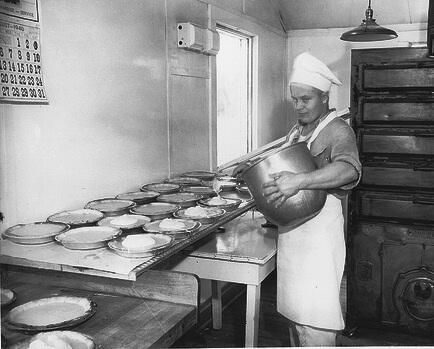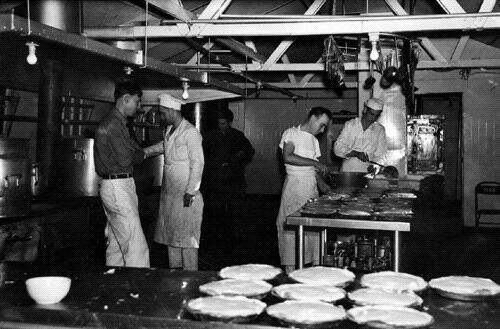 a CCC kitchen crew; in a commissary; CCC cook learning to to cook; cooks baking piesPhotograph Details
