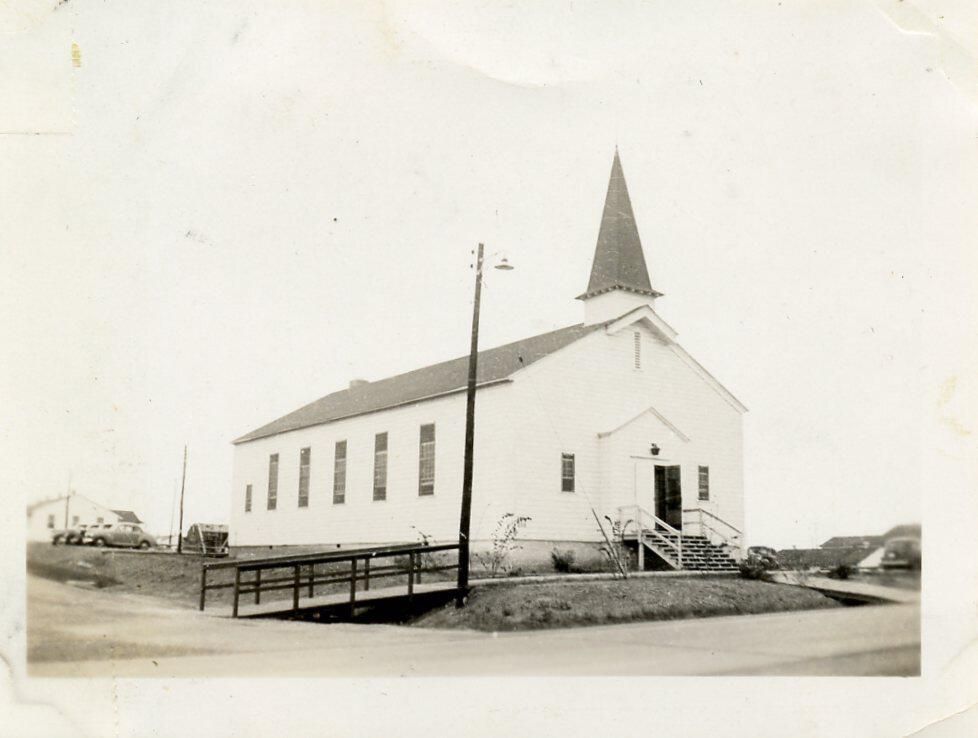 old photos from the Camp Claiborne book of the chapel; the ruins of the chapel with the foundation, chimney and heaterPhotograph Details