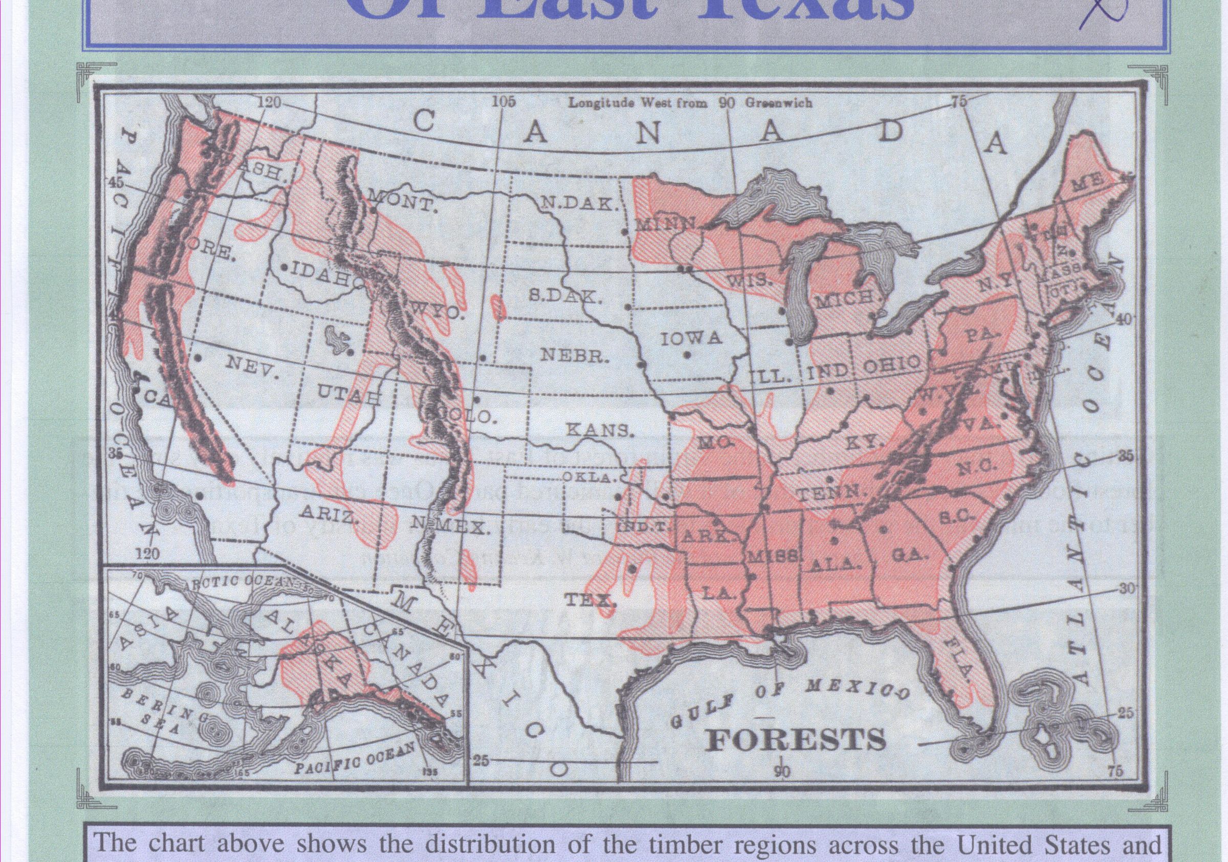 a map (or chart) of the timber/forest region in the United States; something to do with East TexasCollection