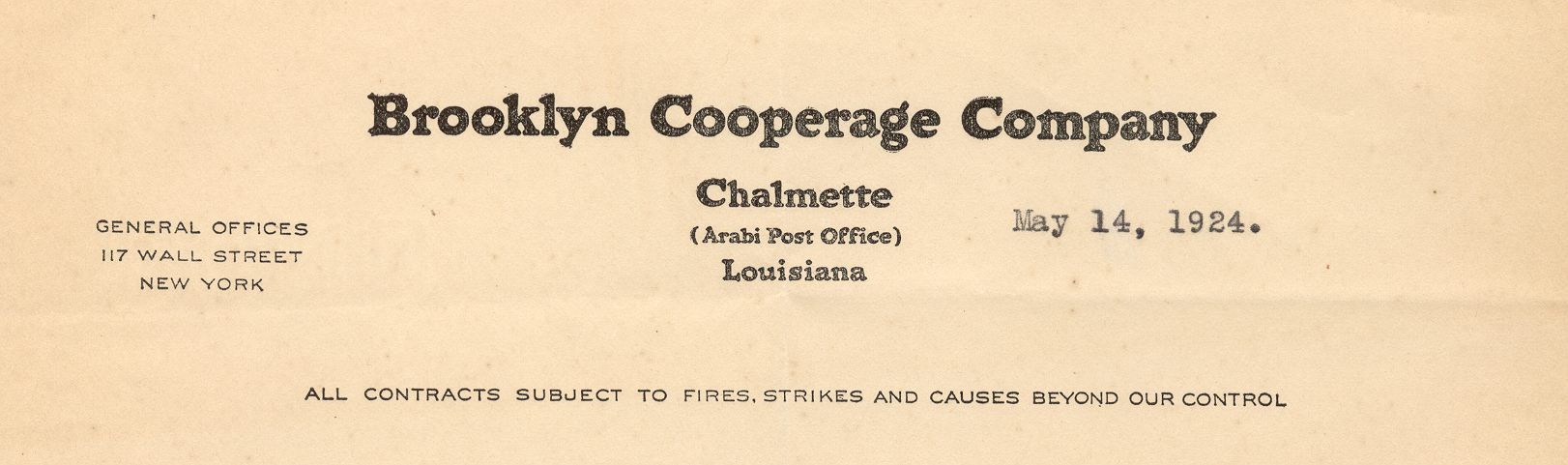 Letterhead from Brooklyn Cooperage Company May 14, 1924Context