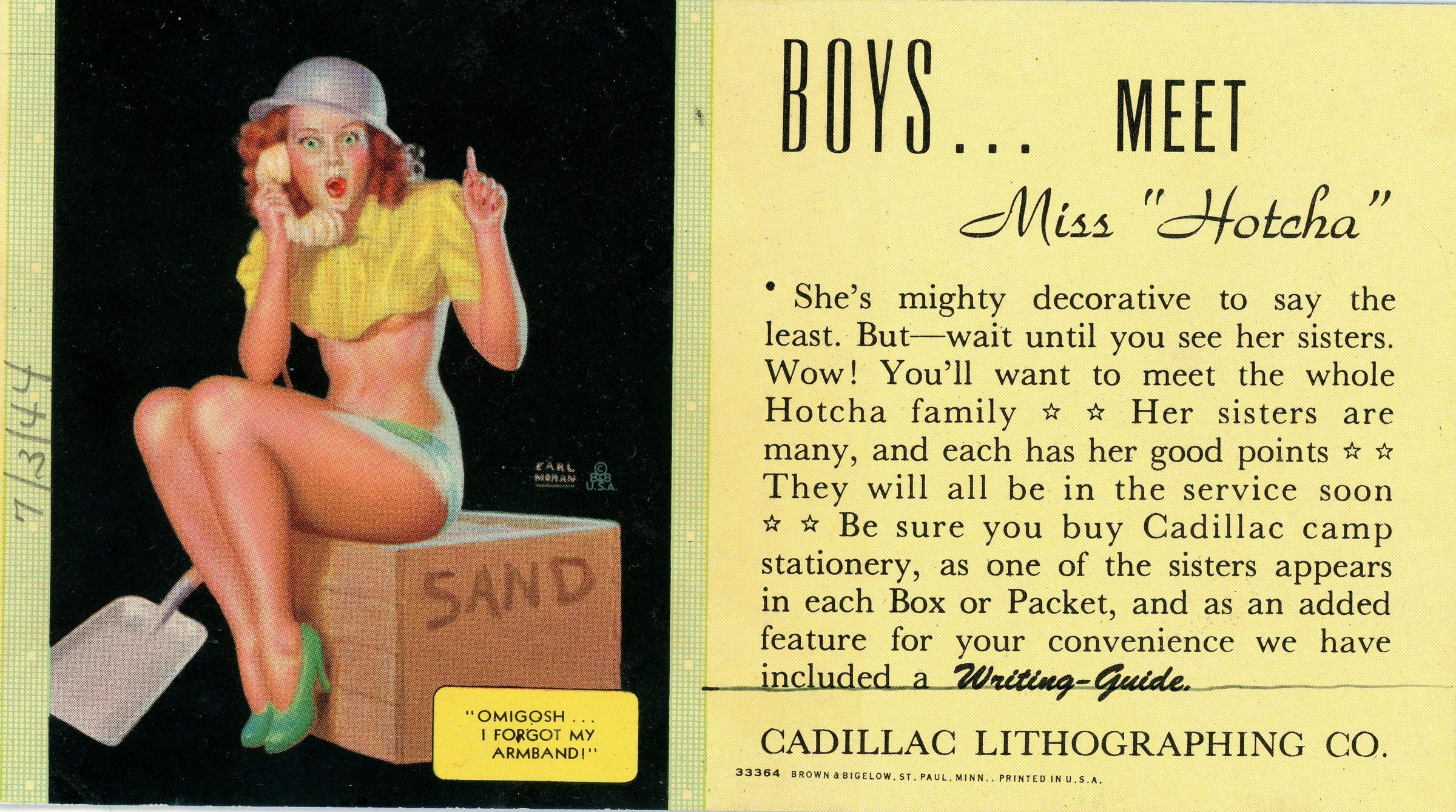 Cadillac Lithographing Co. introduces Miss "Hotcha" and sisters to encourage purchasing their products.