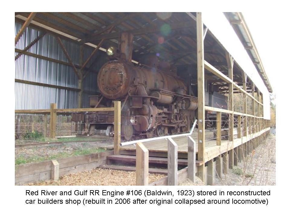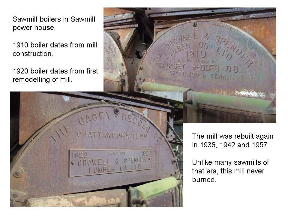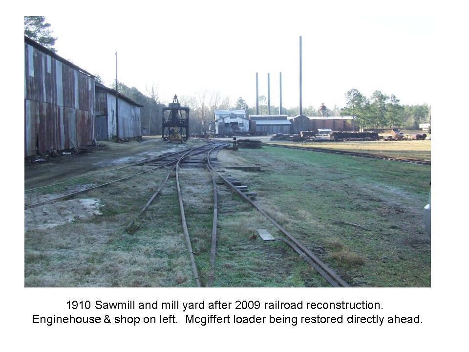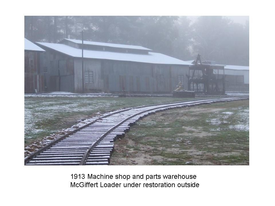 follows from entrance, chief's lumber salesman house, mill superintendent's house, commissary building, old safe, service station, planer mill and post office, lumber storage, doodlebug on commissary side, lumber shipping clerk's office and planer mill, Corliss steam engine, Clyde Log Skidder and C&S Lumber engine #400, Clyde double drum, engine house in snow, machine shop in snow, Meridian Lumber engine #202, sawmill and mill yard, backside of samill, log carriage and band saw, short side cut off saw, Red River & Gulf engine #106Creator