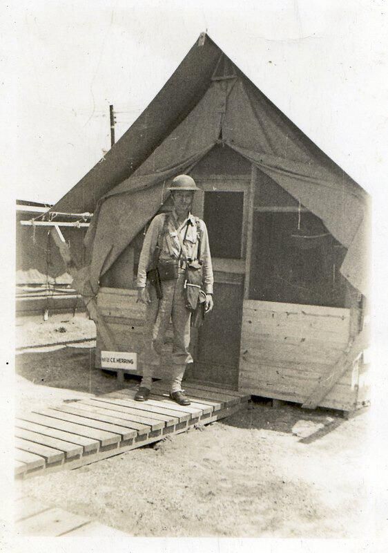 Shows what a soldier in full fit would look like in Camp Claiborne.