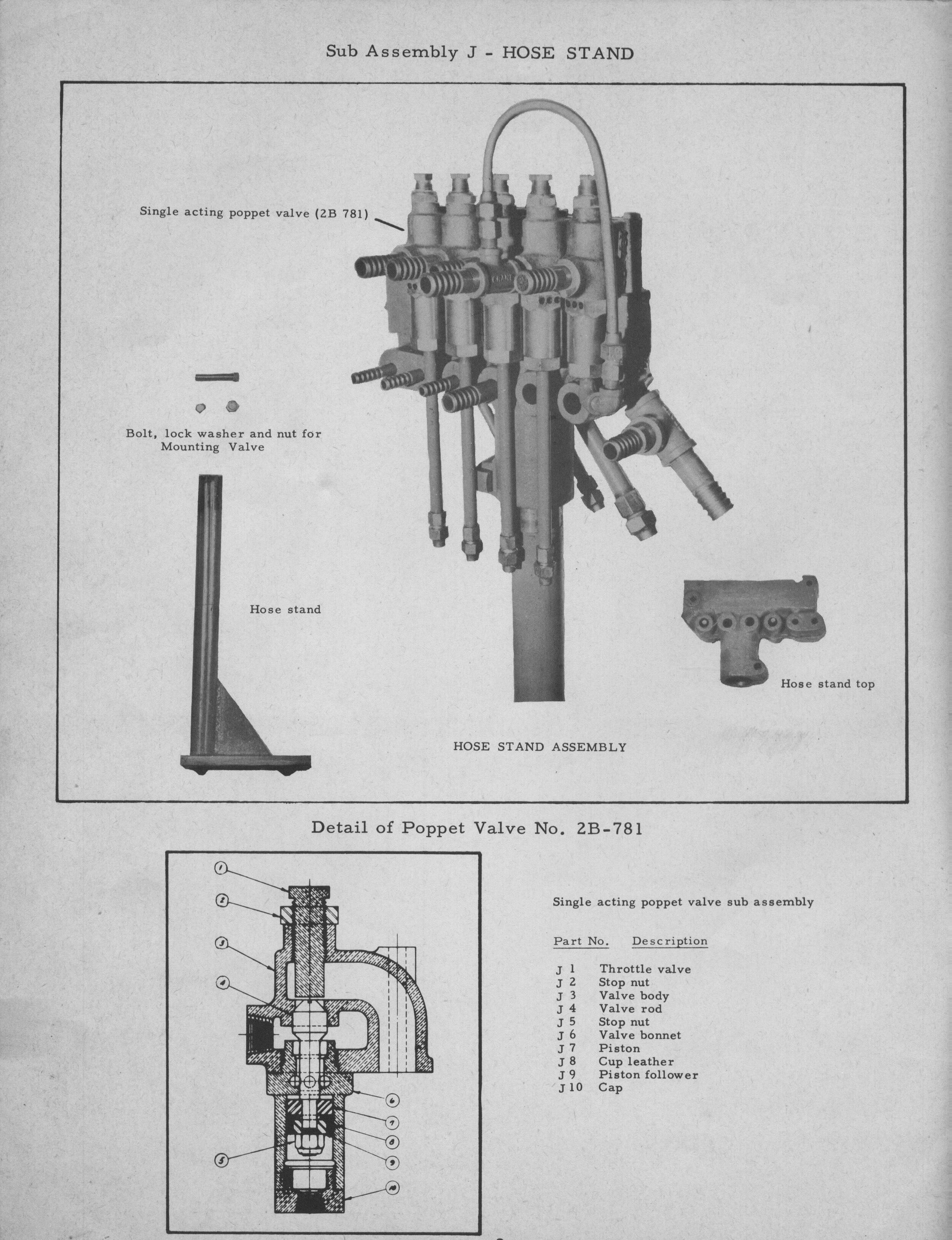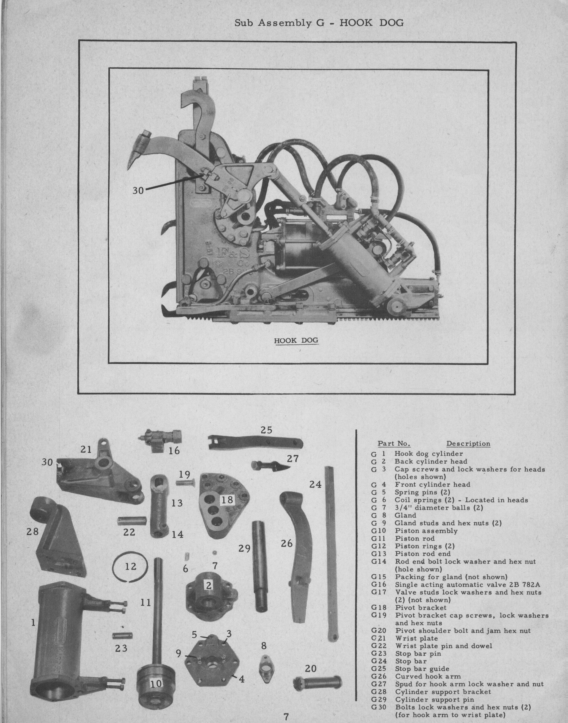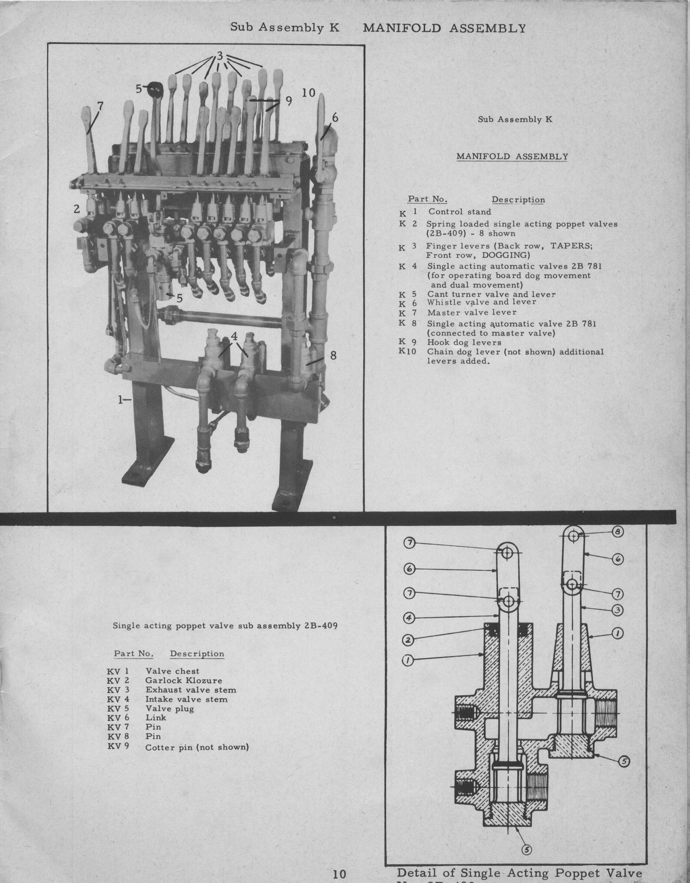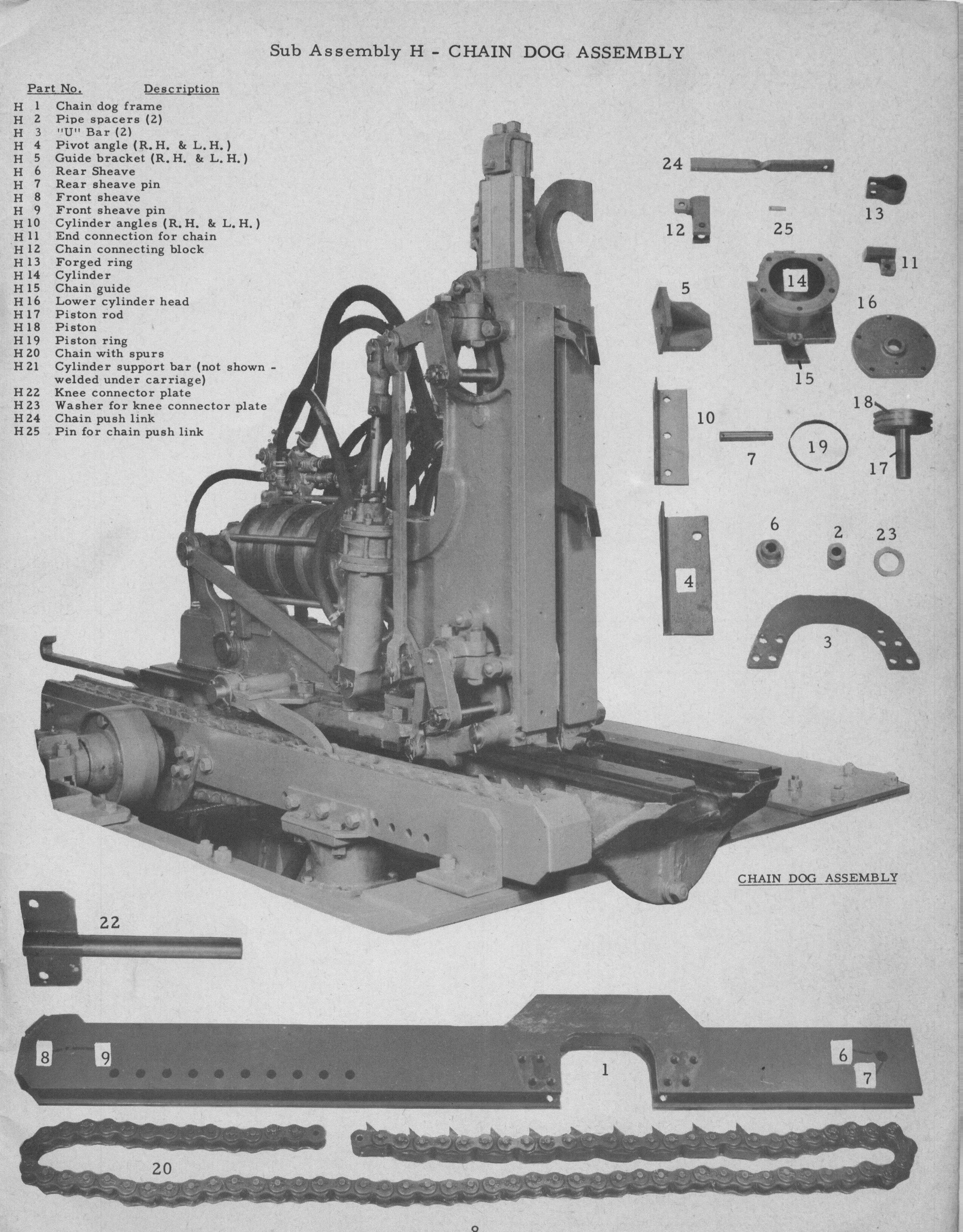 features the assembly parts of the Rack and Pinon Air Dog Carriages: Upper dog holder, Dogging cylinder with lower dog, Board dog movement, taper set cylinder, Full back cylinder, Spring cushion, Hook dog, Chain dog, Hose stand, Single acting poppet valve No. 2B-781, Manifold, and Single acting poppet valve No. 2B-409; then the assembly parts of each of the parts given in the front page of the Rack and Pinon Air Dog CarriagesContext