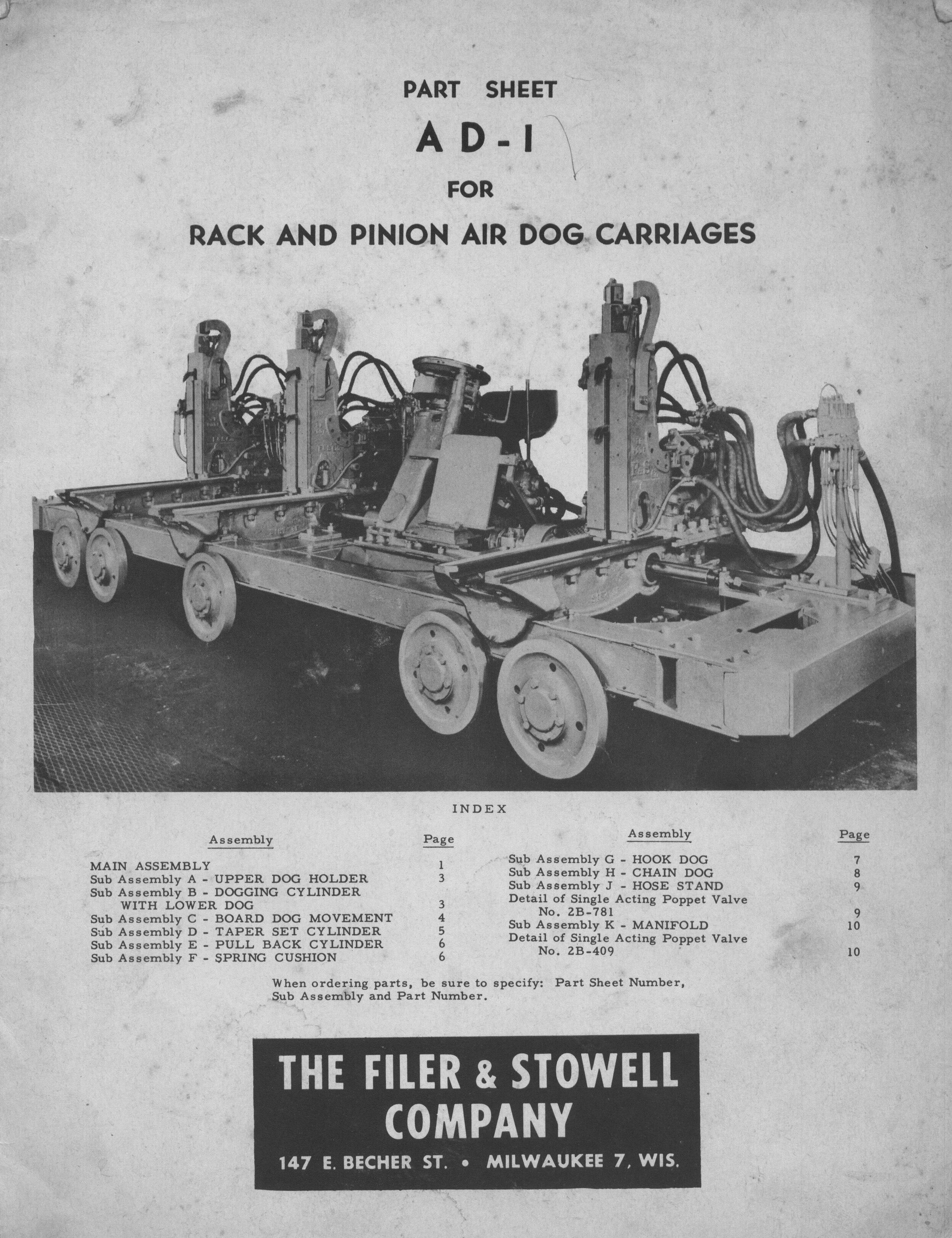 Filler & Stowell Rack and pinion air dog carriages AD1 pg1 (thru) pg11Other Numbers