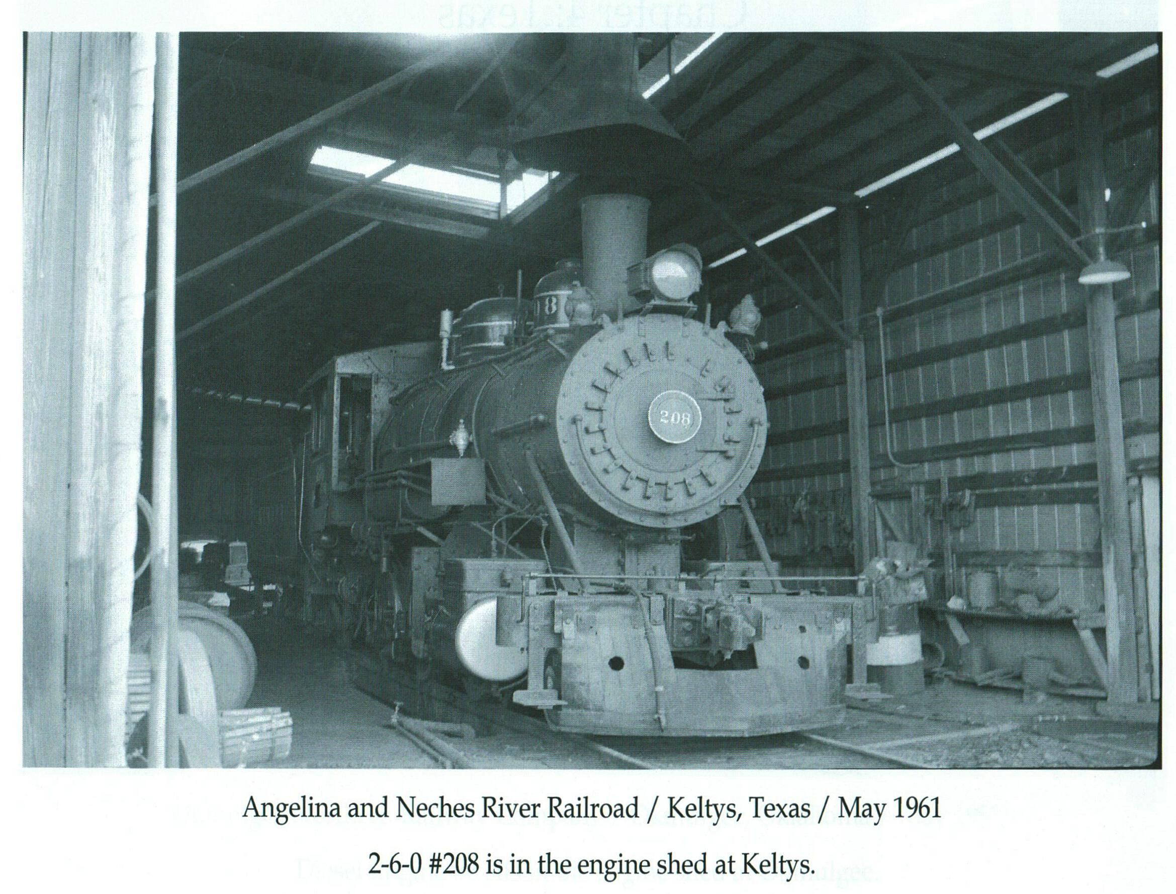 2-6-0 #208 engine for the Angelina and Neches River Railroad; in the shed at the Keltys locationCollection