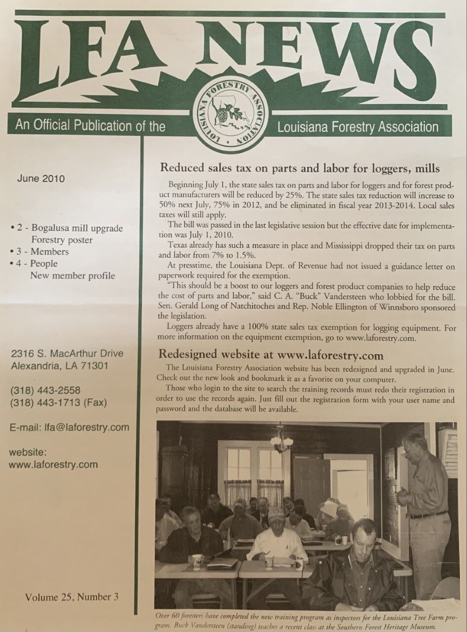 News from June of 2010 that is part of the official publication of the Louisiana Forestry AssociationContext