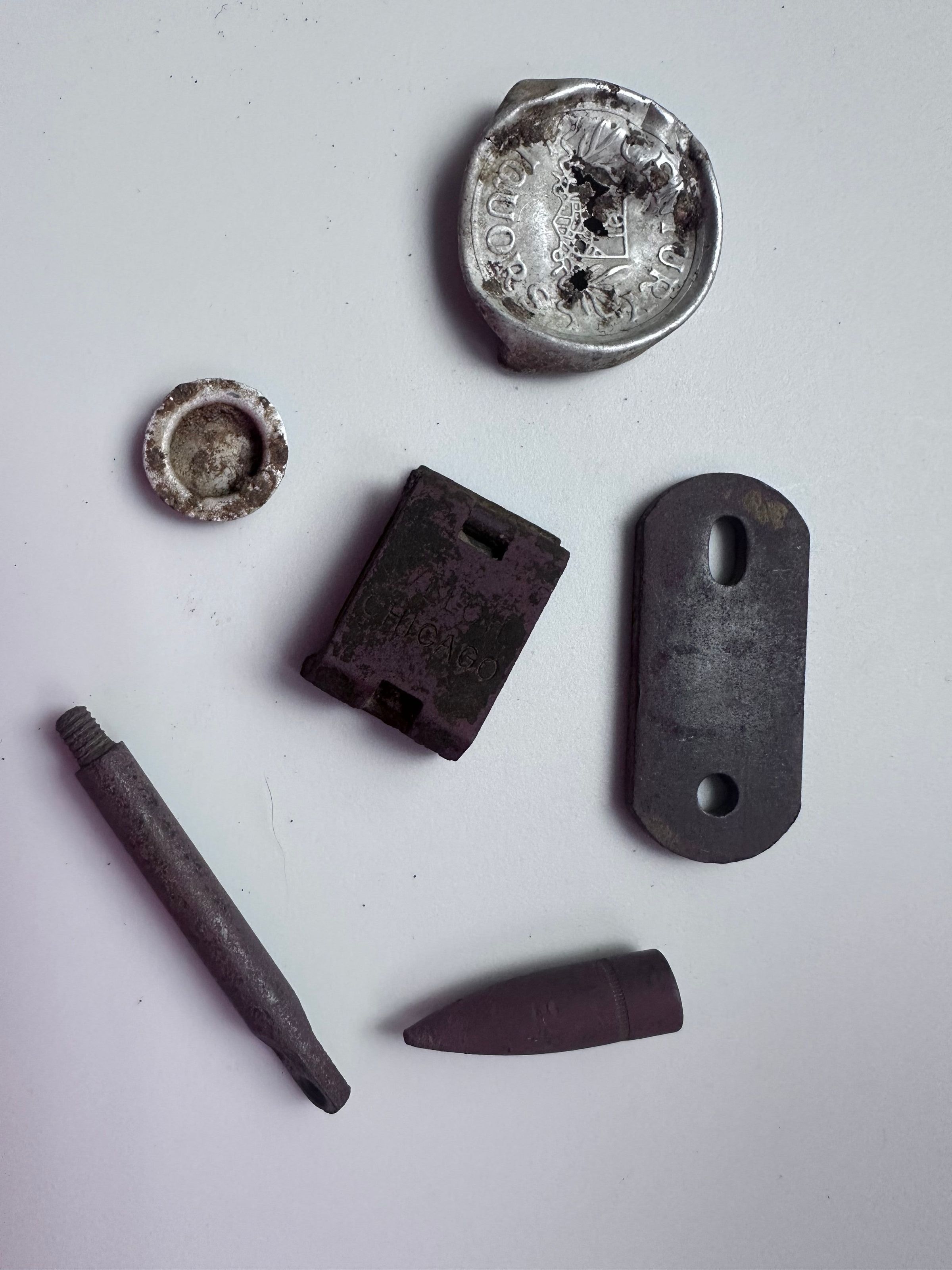 Including a Rifle Front Sight Blade; Bullet; Machinery pieces; Liquor Top