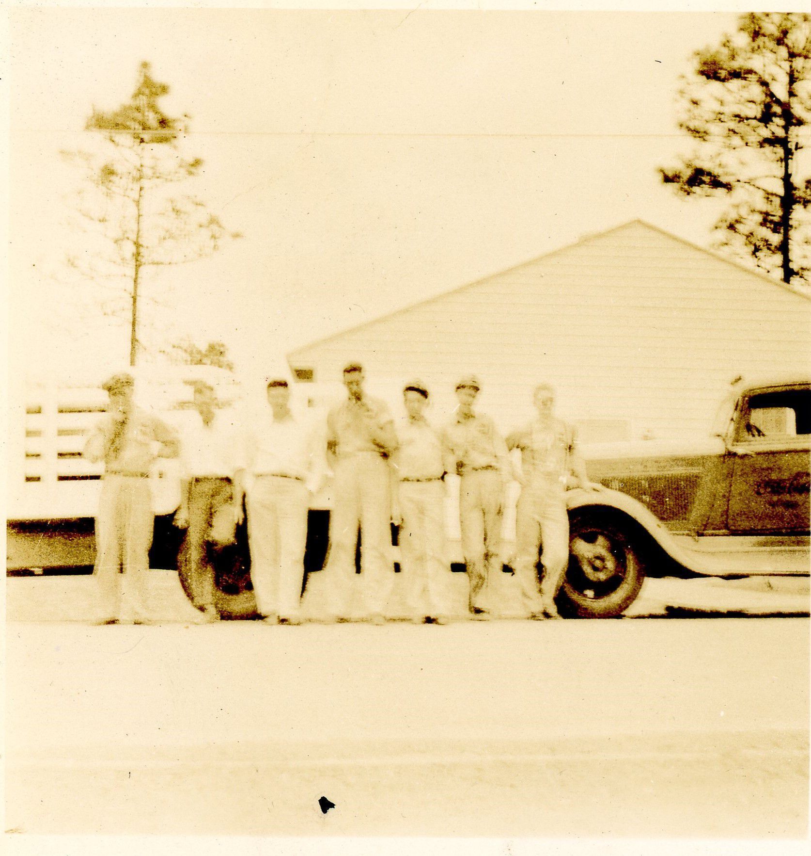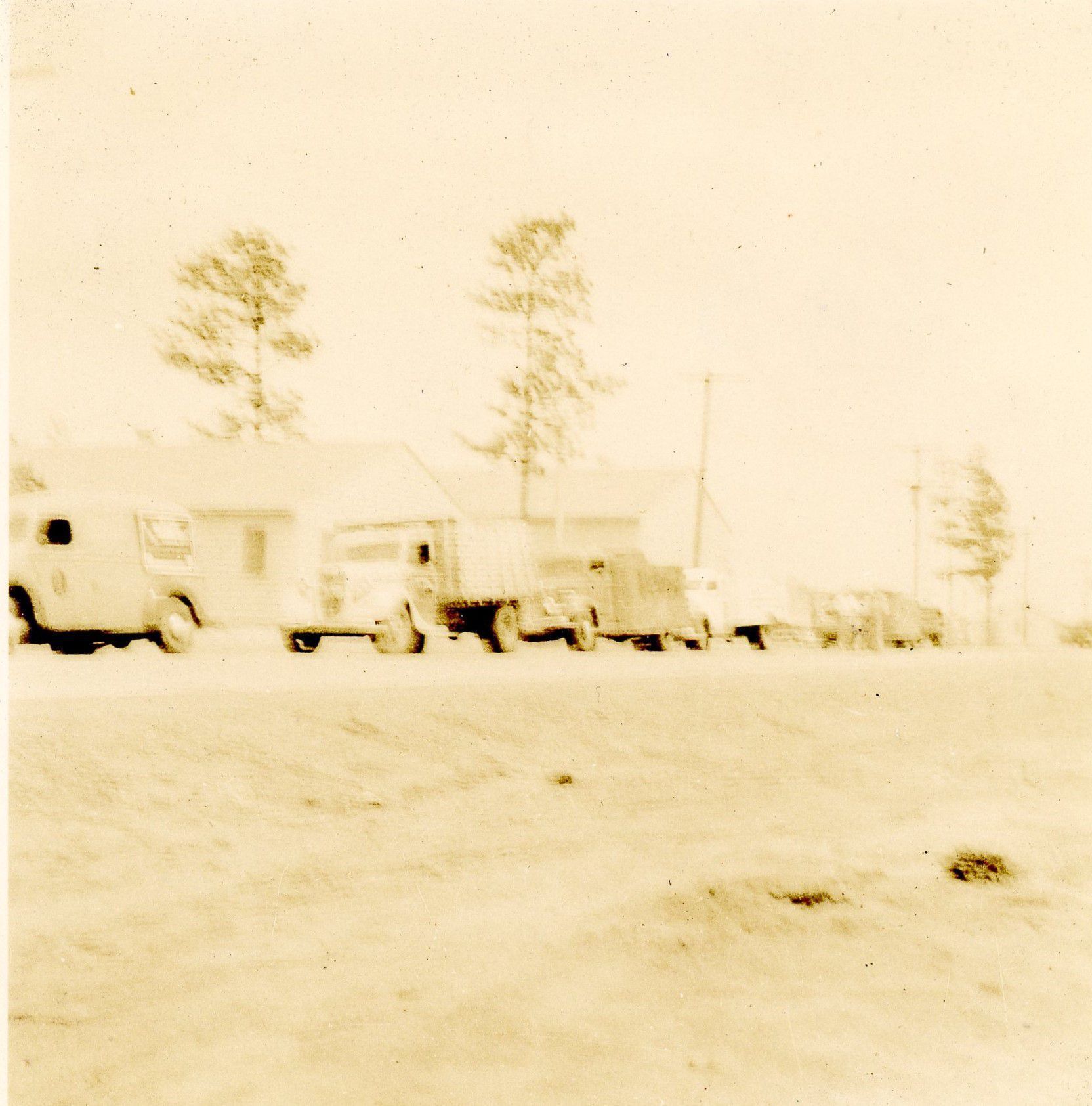 Miscellaneous snapshots around Camp Claiborne-- including an unnamed group photo and military vehicles lined up.Photograph Details