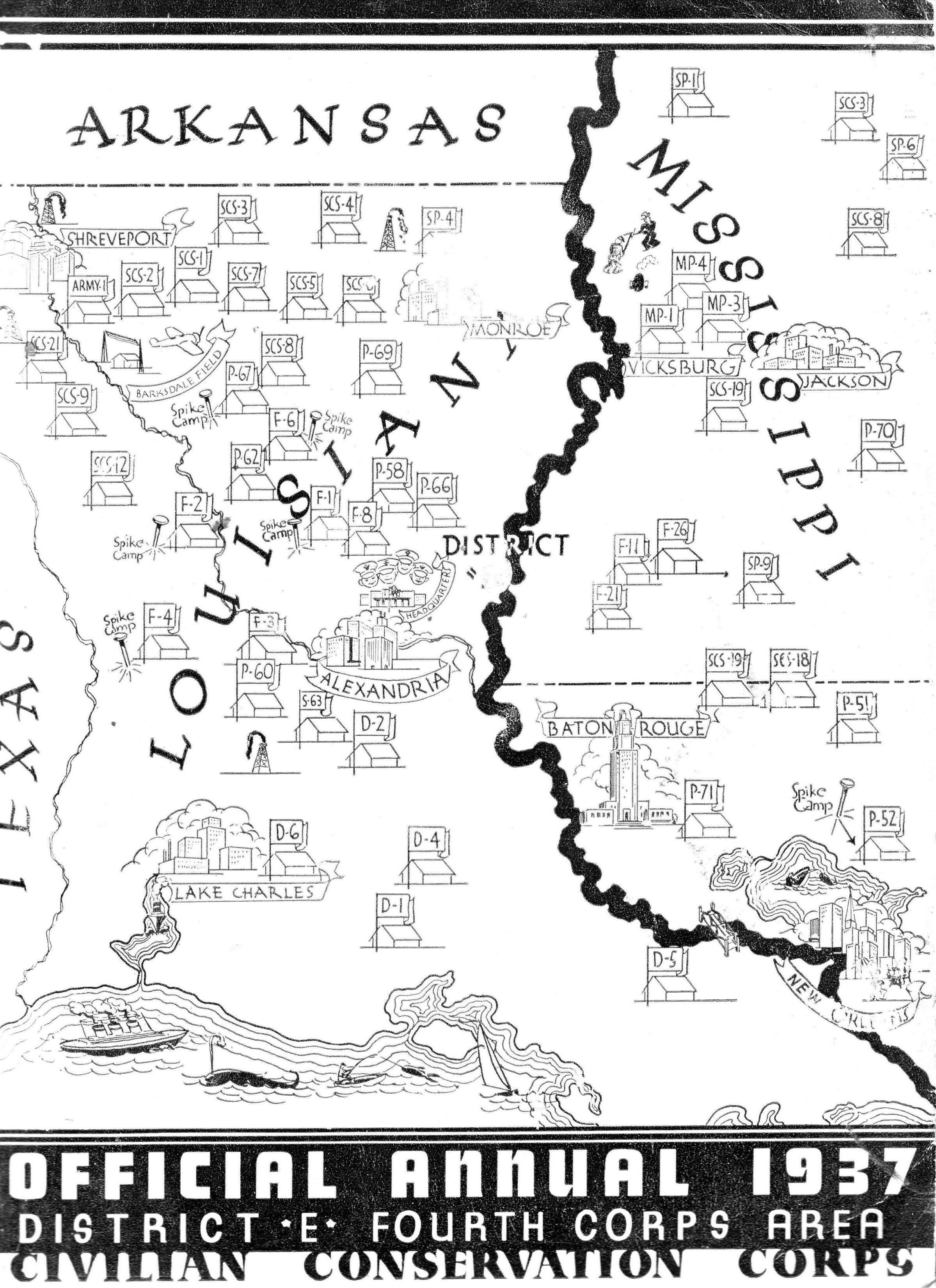a map of LA and MS of the camps in the fourth corps of District E in the CCC; part of an official report of the number of camps in this districtCollection