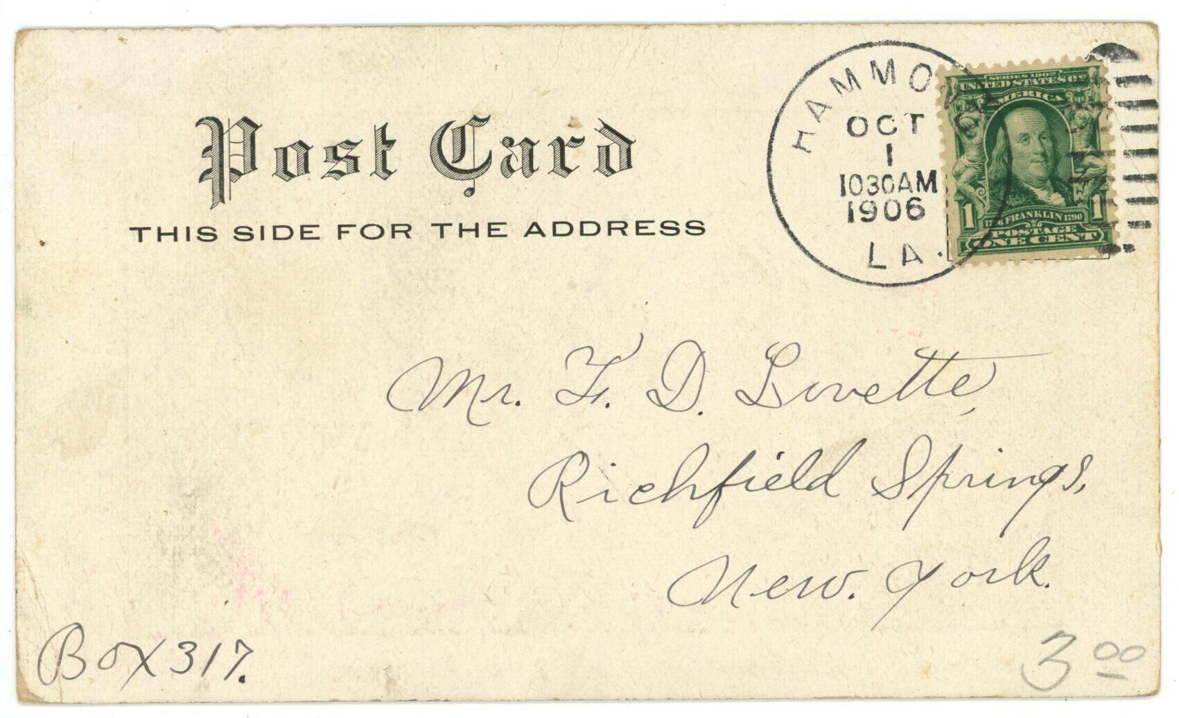 Postcard of Hammond, LA (b)Entry/Object ID