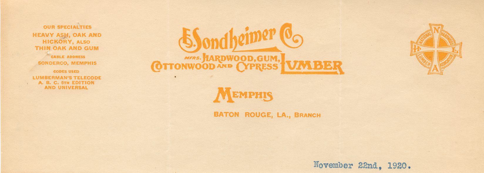 The Sondheimer Company began operations in Baton Rouge, Louisiana. The company worked with many types of lumber including Cypress and Cottonwood lumber.Collection