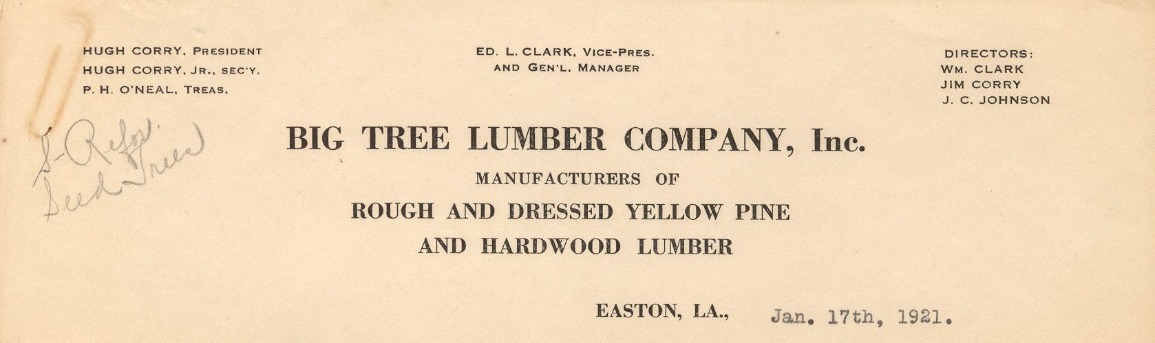 Letterhead from Big Tree Lumber Company, Inc. Jan 17, 1921Context
