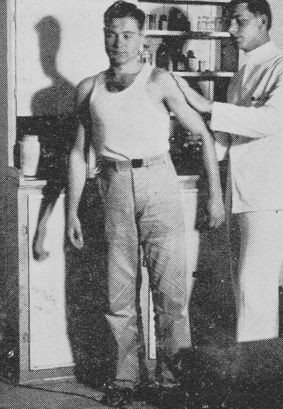 CCC camp 4404; 3 CCC boys in a shortwave radio circuit operation; physical check up at the medic center