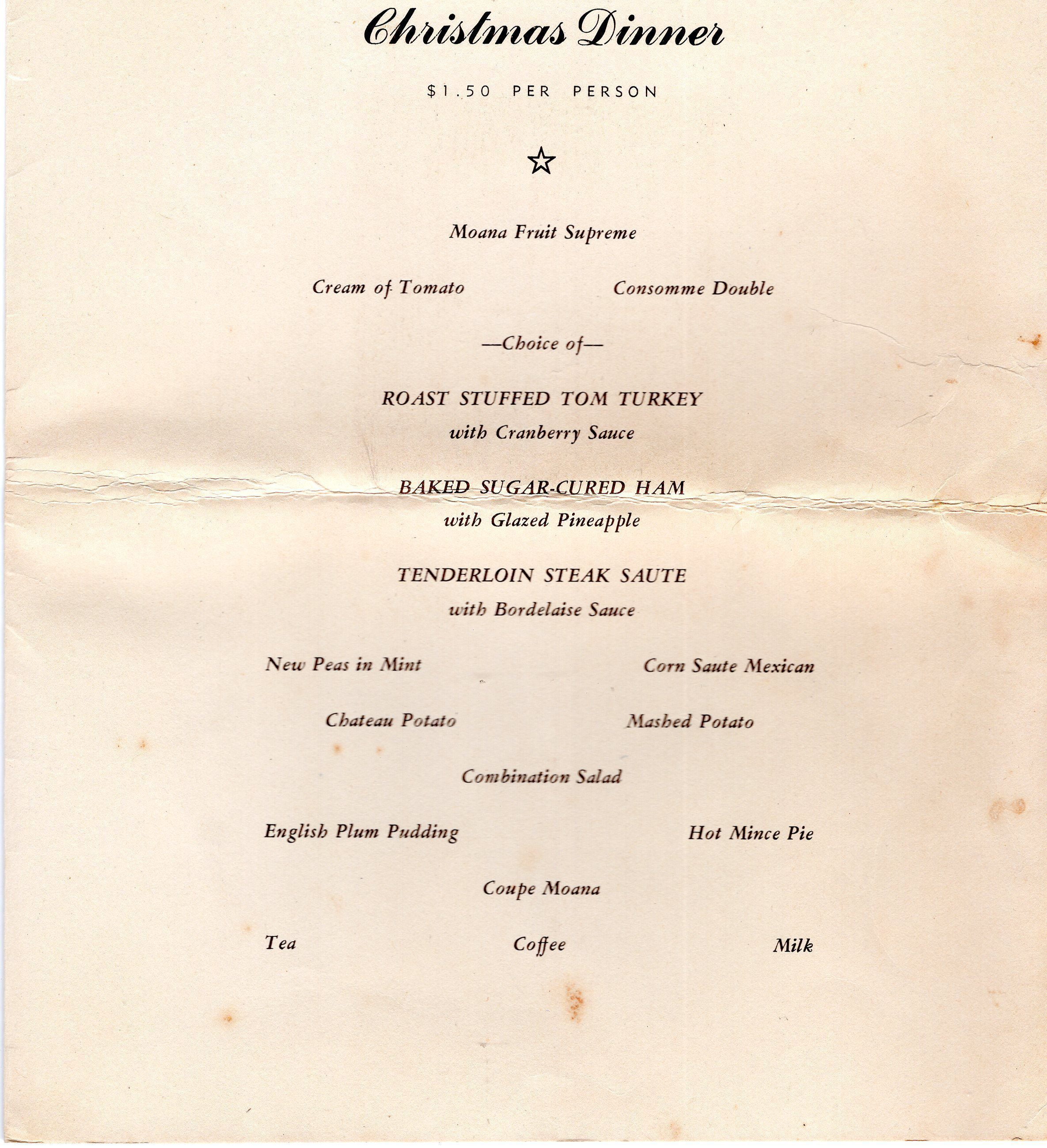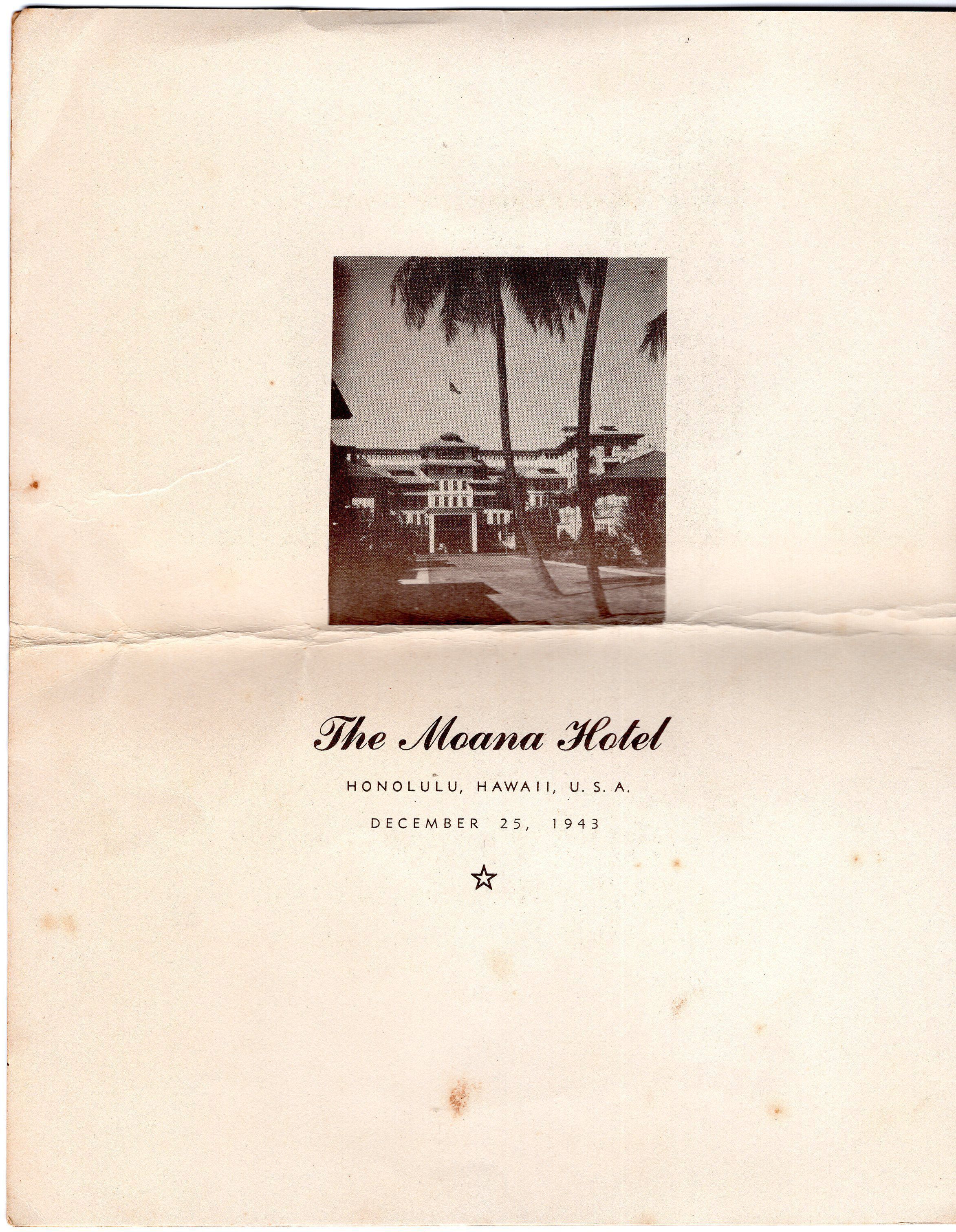 Christmas Dinner 1943- Menu from Moana Hotel in Honolulu, HawaiiEntry/Object ID