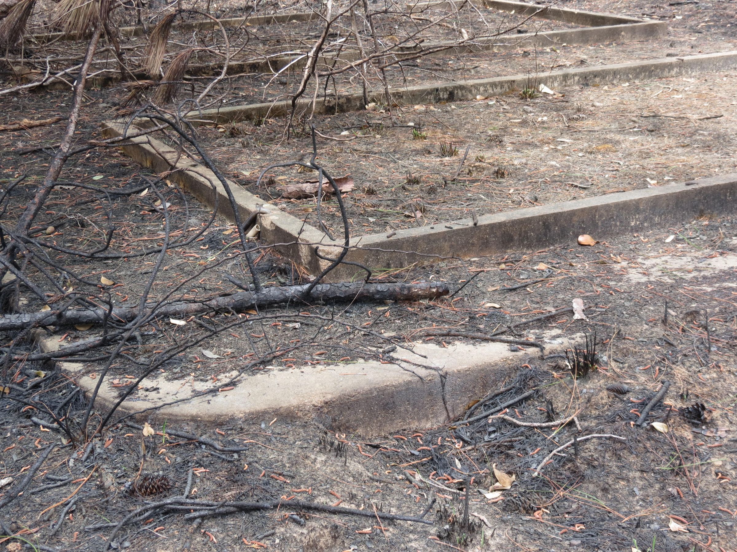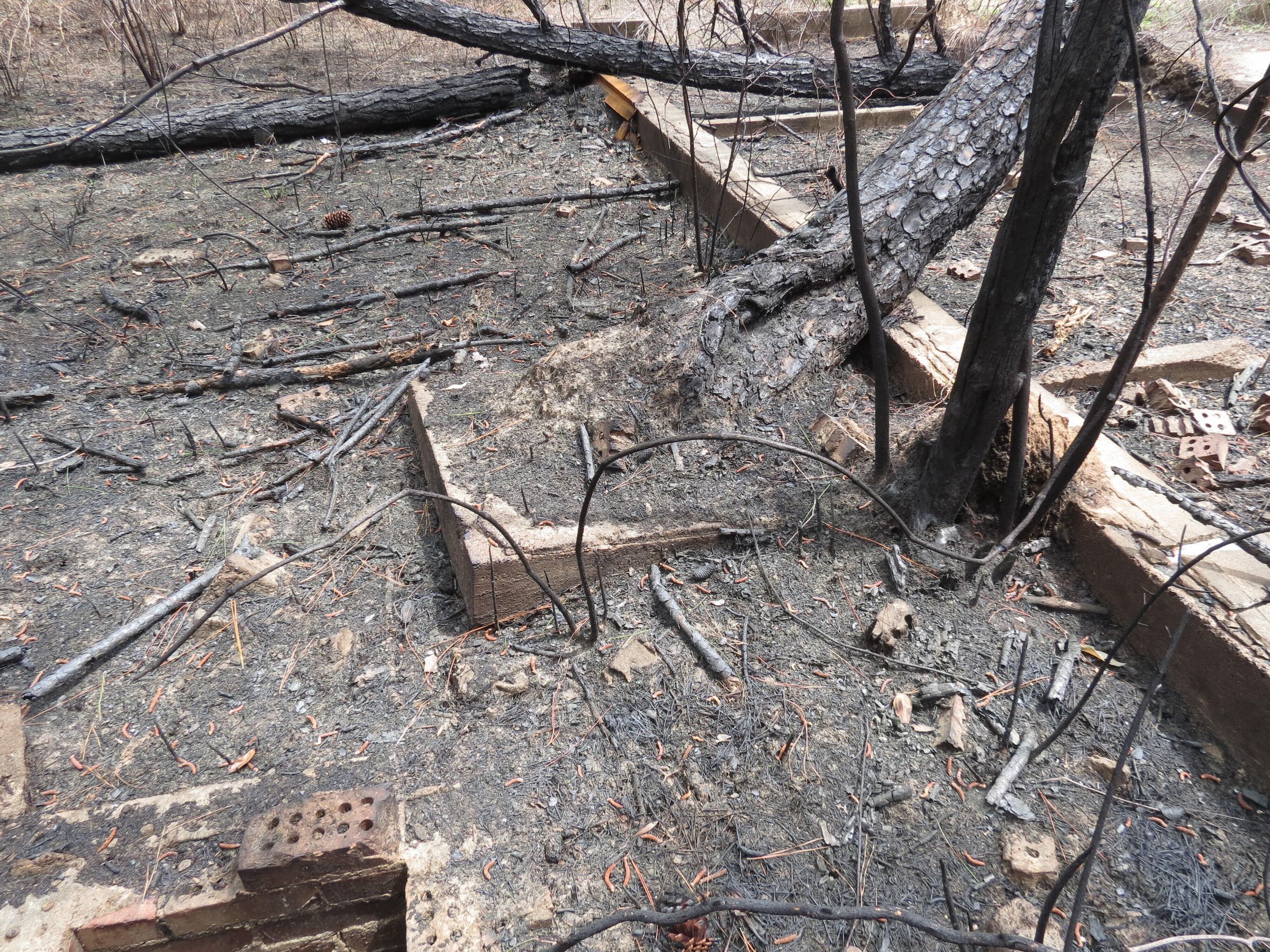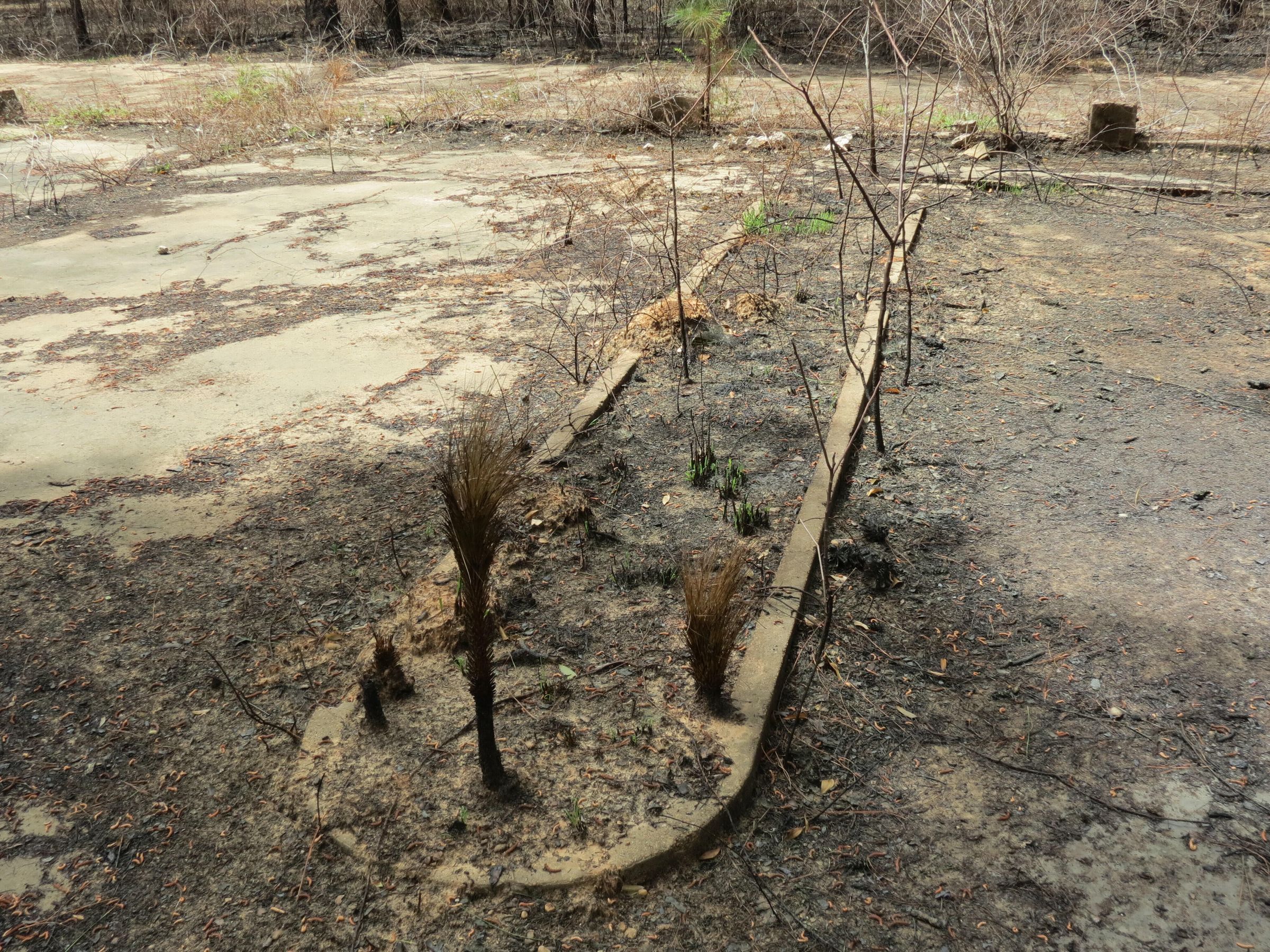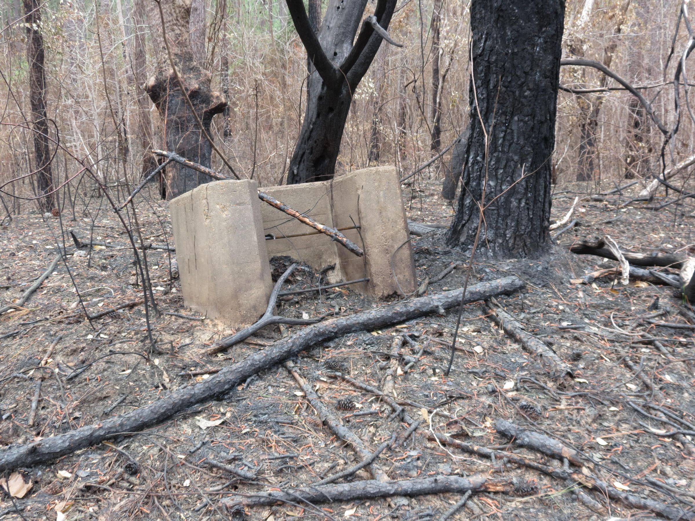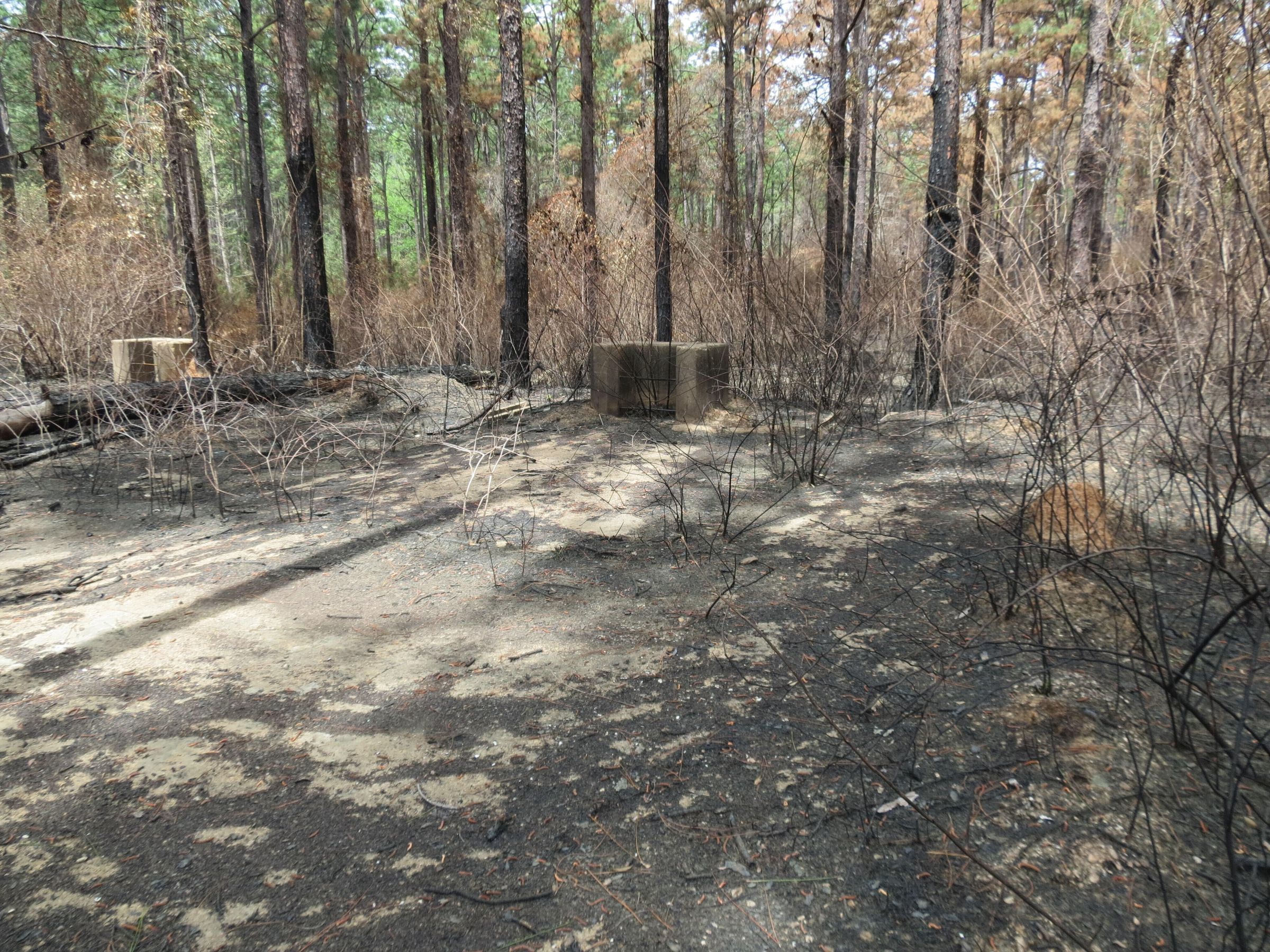 the ruins of the motor pool for the Black troop of Camp Claiborne; an example of what a motor pool looks like; the foundation of the dispatch office building of the motor pool; the fuel point (by dispatch office); the offices and supply rooms ruins of the repair shop at the motor pool; the storage building for the motor pool; the garage for the vehicles at the motor pool; the garage has protective barriers around it and supports; the garage offices; vehicle repair building for the motor pool; services pits and racks beside the repair shop and garage/maintenance; wooden posts to keep vehicles from hitting the buildings; utilities of the buildings (wires, furnaces); wash rack and drainage systemPhotograph Details