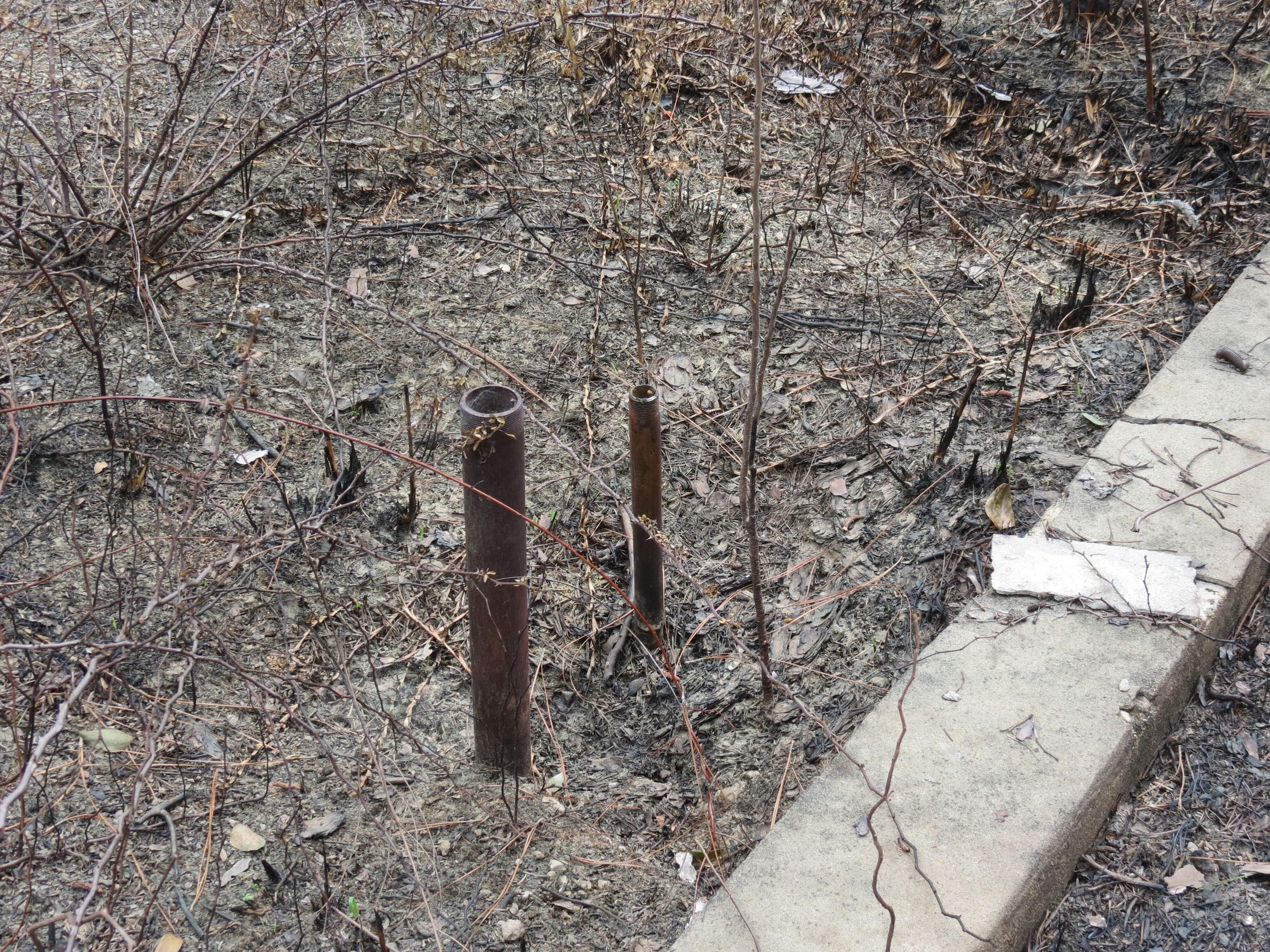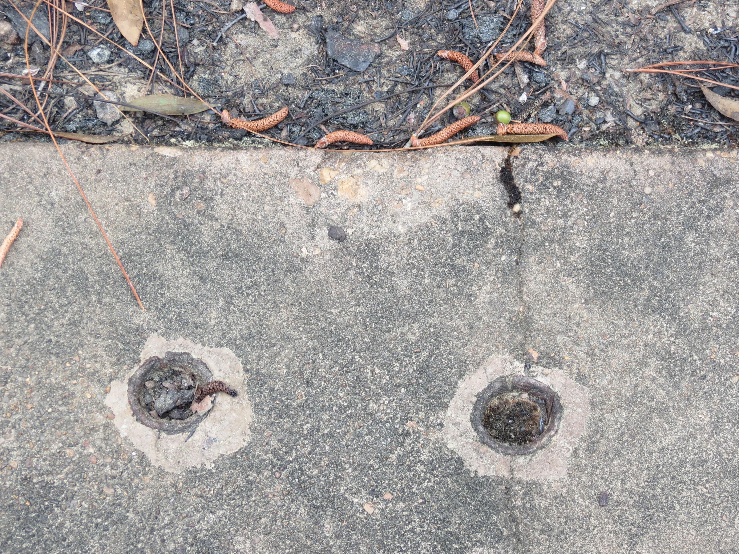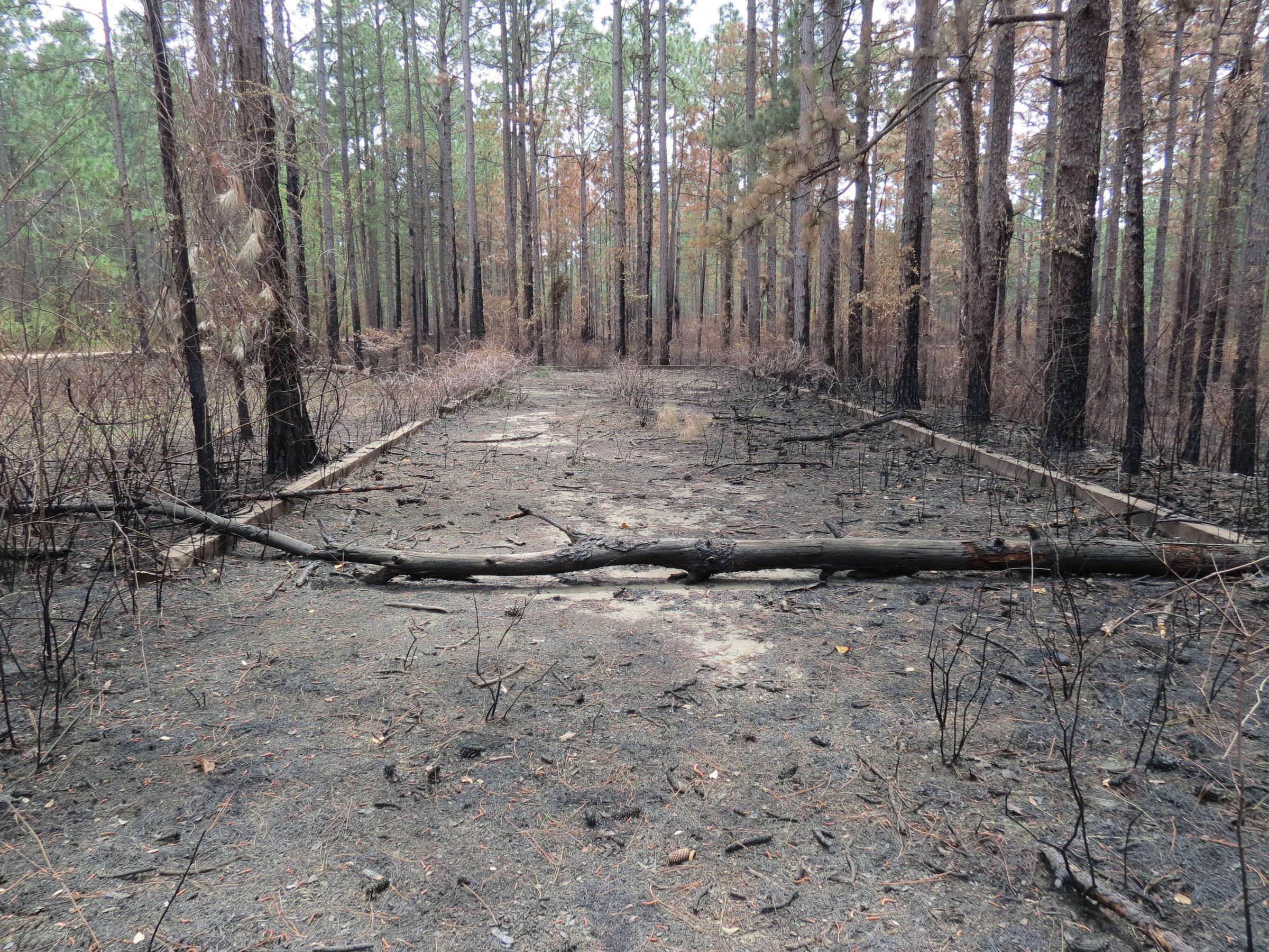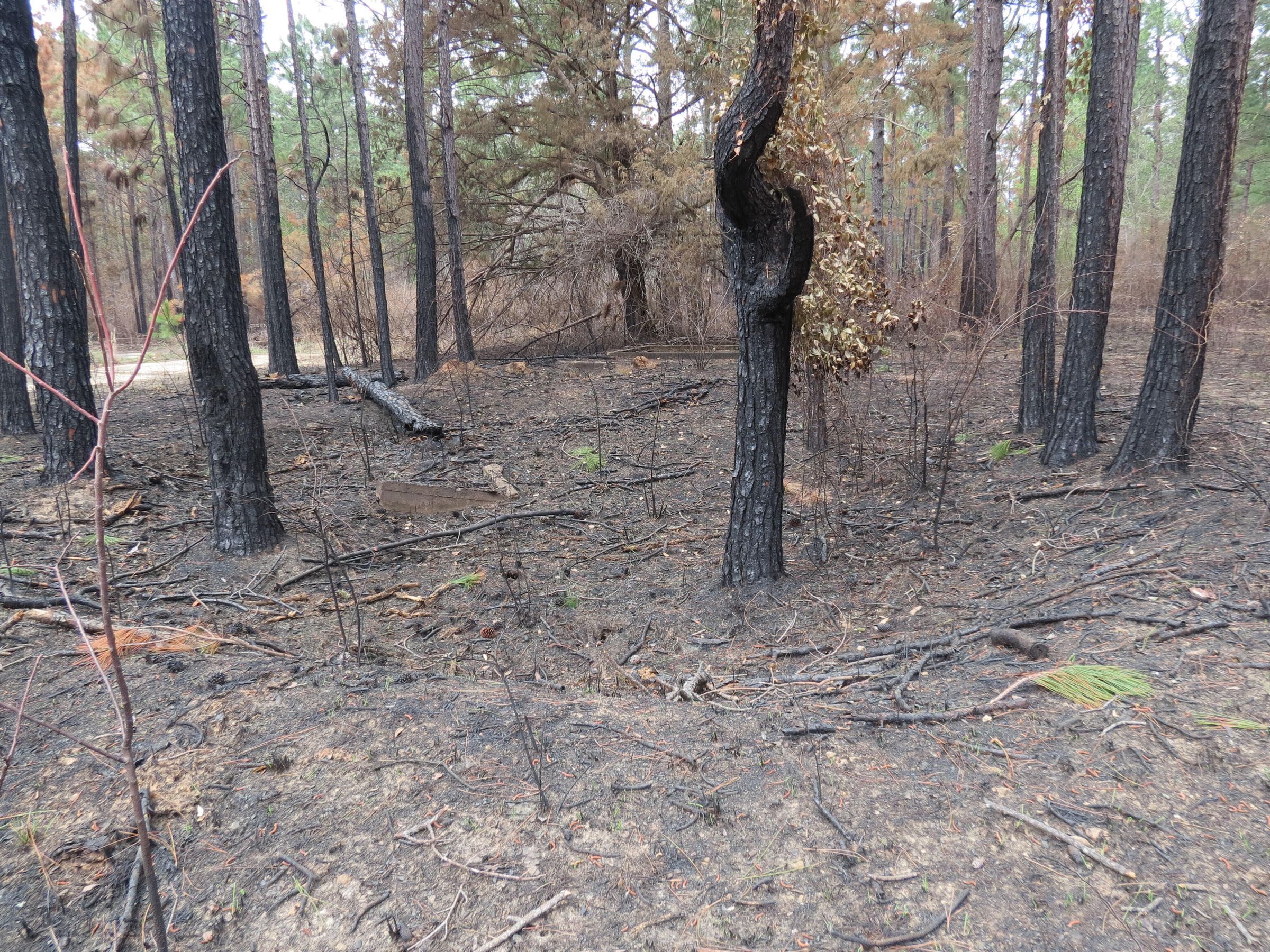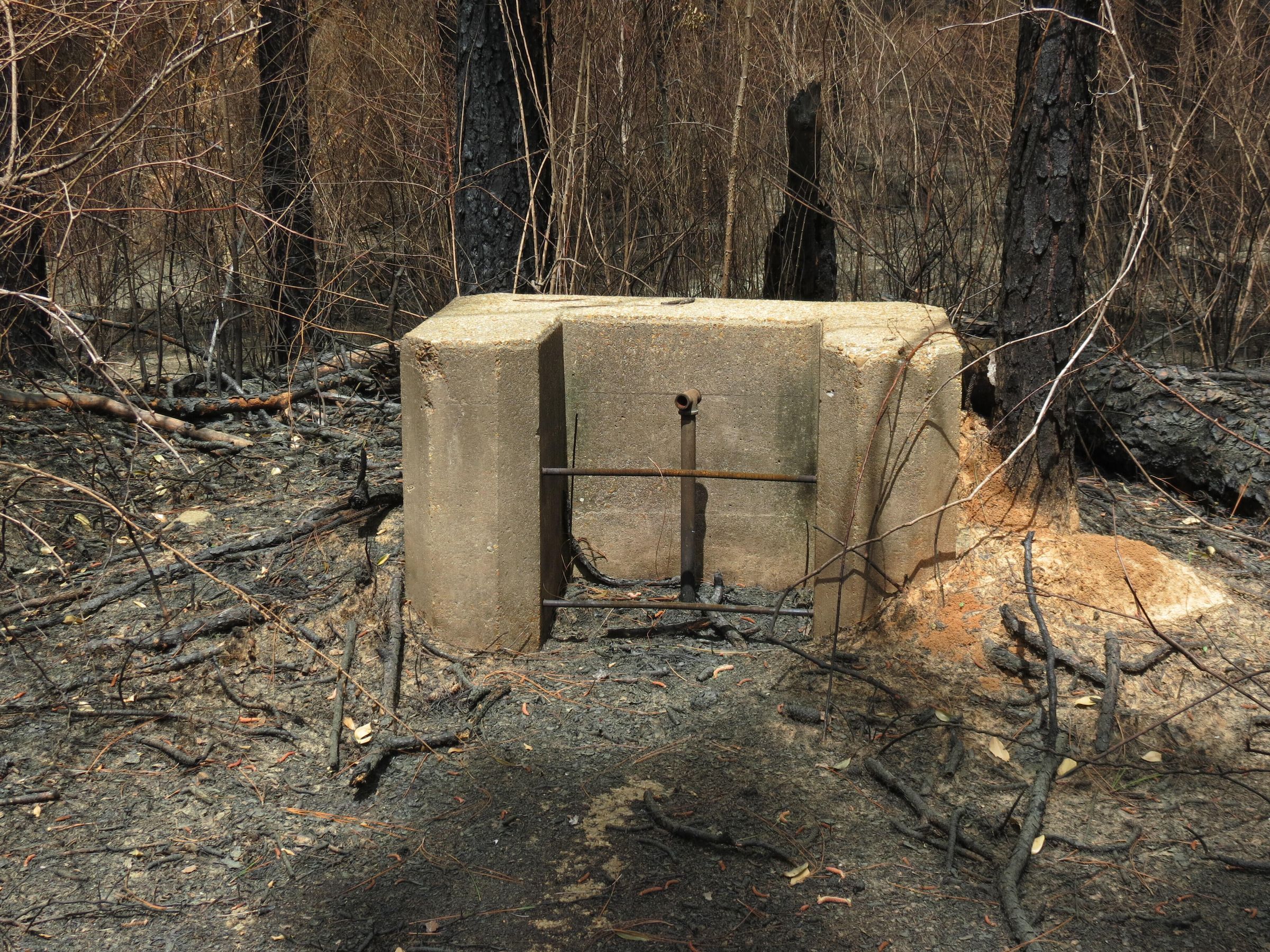 the ruins of the motor pool for the Black troop of Camp Claiborne; an example of what a motor pool looks like; the foundation of the dispatch office building of the motor pool; the fuel point (by dispatch office); the offices and supply rooms ruins of the repair shop at the motor pool; the storage building for the motor pool; the garage for the vehicles at the motor pool; the garage has protective barriers around it and supports; the garage offices; vehicle repair building for the motor pool; services pits and racks beside the repair shop and garage/maintenance; wooden posts to keep vehicles from hitting the buildings; utilities of the buildings (wires, furnaces); wash rack and drainage systemPhotograph Details