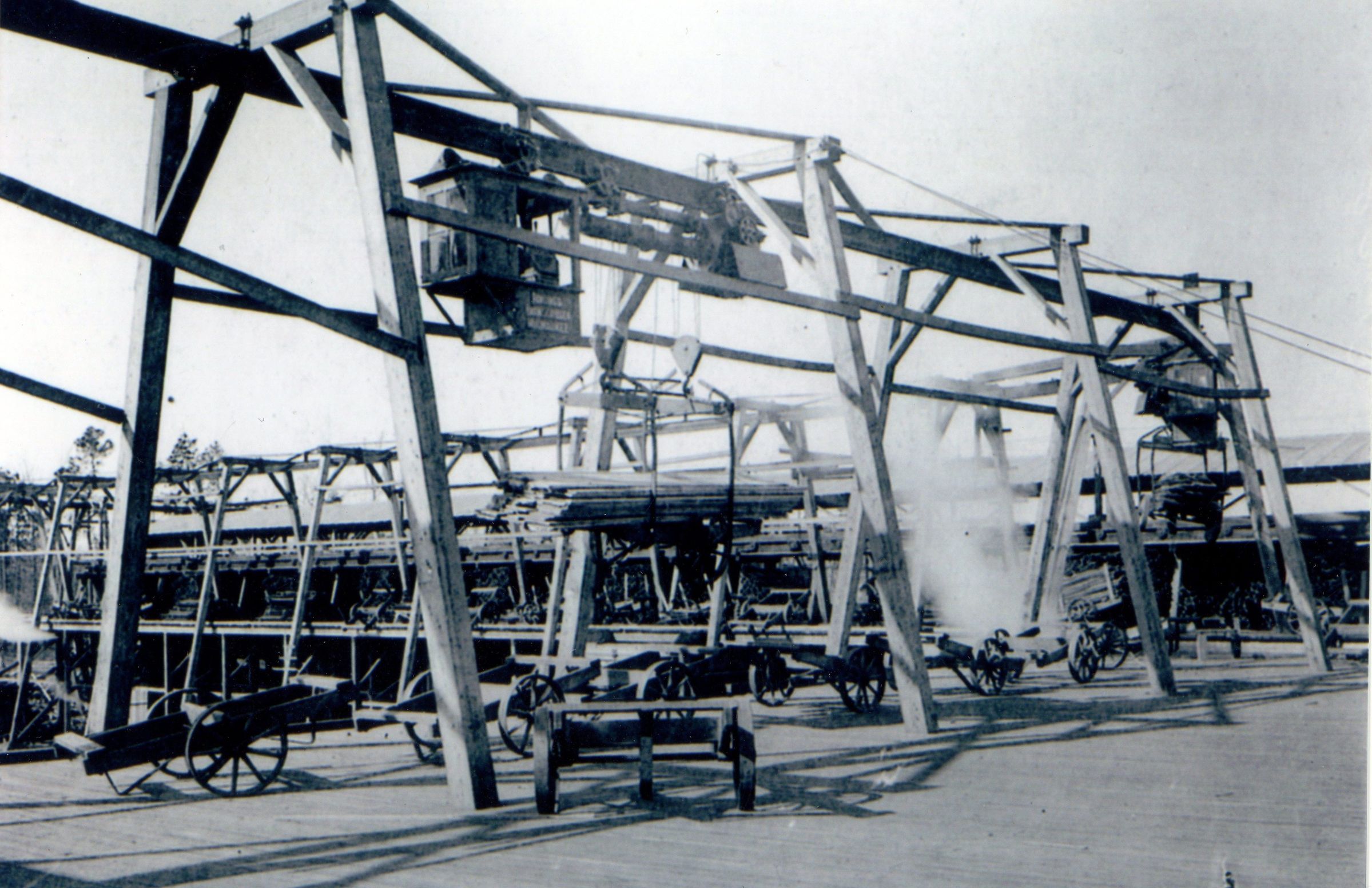 Each cart could be managed by one man when loaded. 30 cars of shed stock could be loaded at the same time. One man could handle 400,000 ft. in one 10 hour shift.Collection