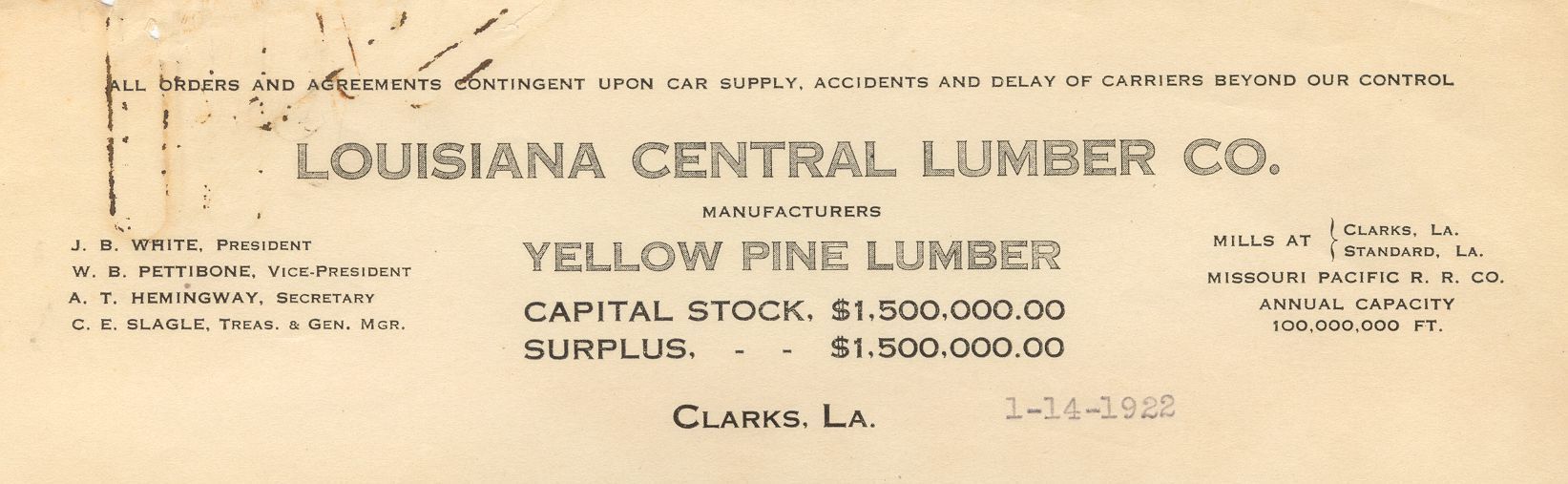 Letterhead from Louisiana Central Lumber Co. Jan 14, 1922Context