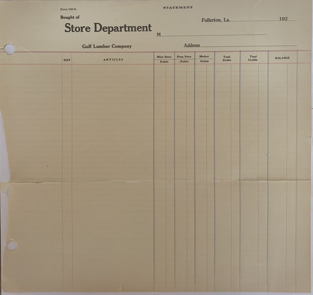 A unique example of a statement sheet used by the Store Department of the Gulf Lumber CompanyCollection