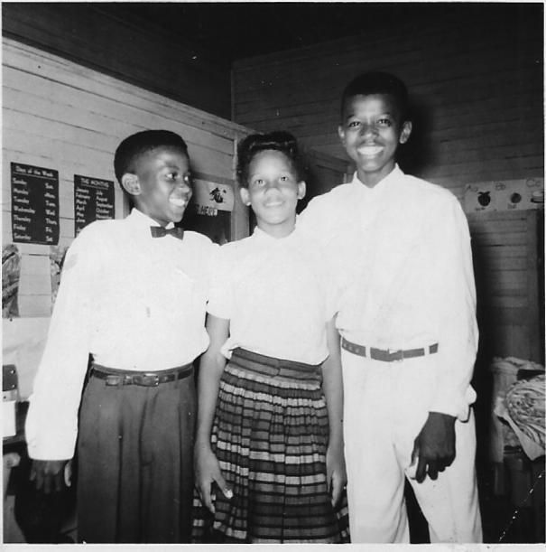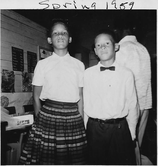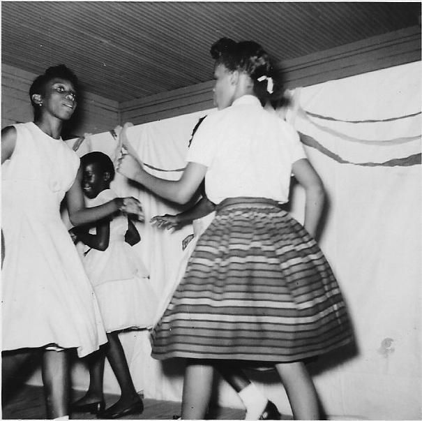 photos of students at the negro elementary school; students participating a play that was put on by the 6th-8th graders in Ara Jackson's room