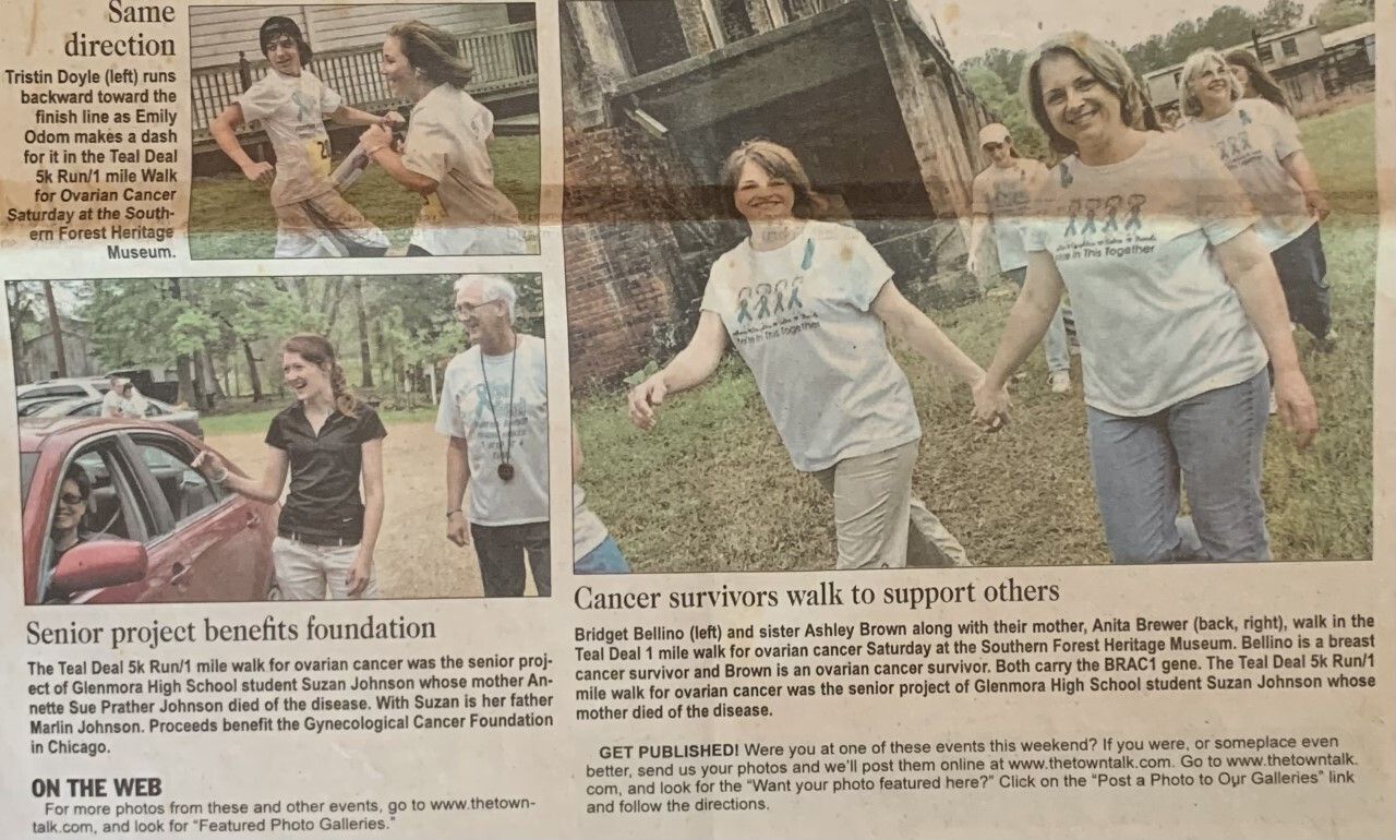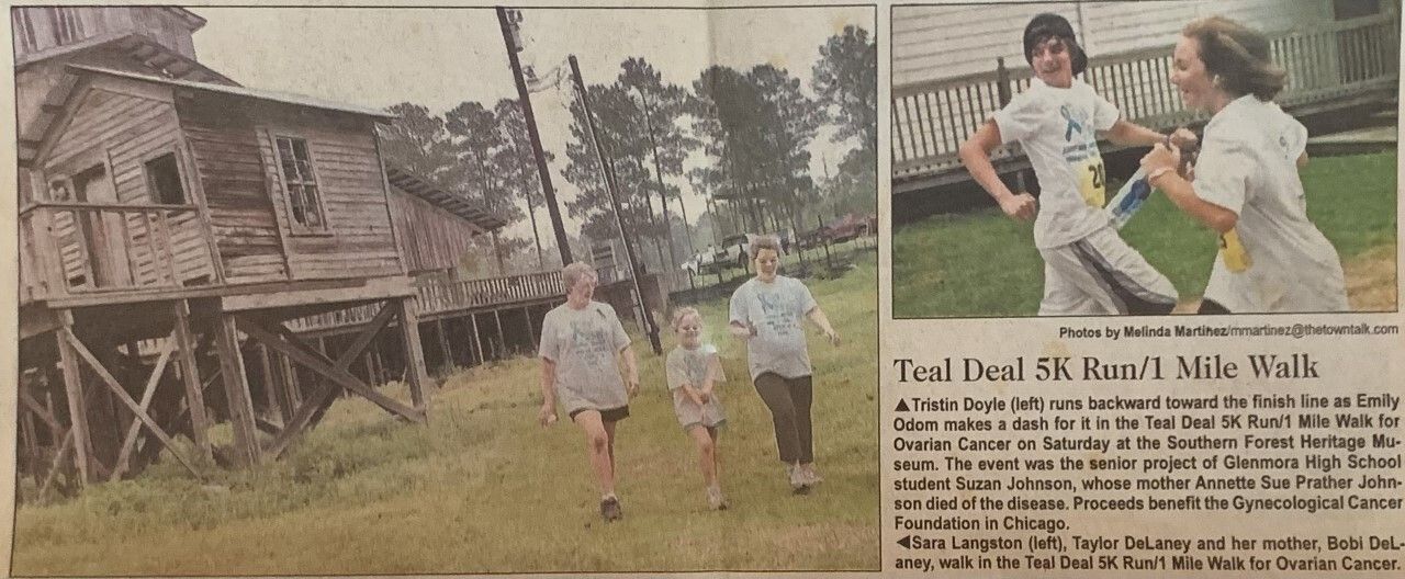 On Saturday, March 26, 2011 the Southern Forest Heritage Museum hosted the Teal Deal 5k Run/1 Mile Walk for Ovarian Cancer, and The Town Talk newspaper published about it.Context