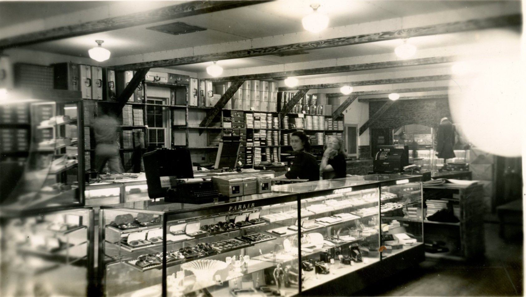 Pictures documenting outlet stores frequented by members of Camp Claiborne. Two women appear documented in the jewelry store.Collection