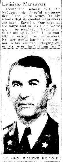 Lieutenant General Walter Krueger admits that the combat maneuvers are hard as the enemy is tough and has had a head start; rest of article is poorly scanned and cannot be readCollection