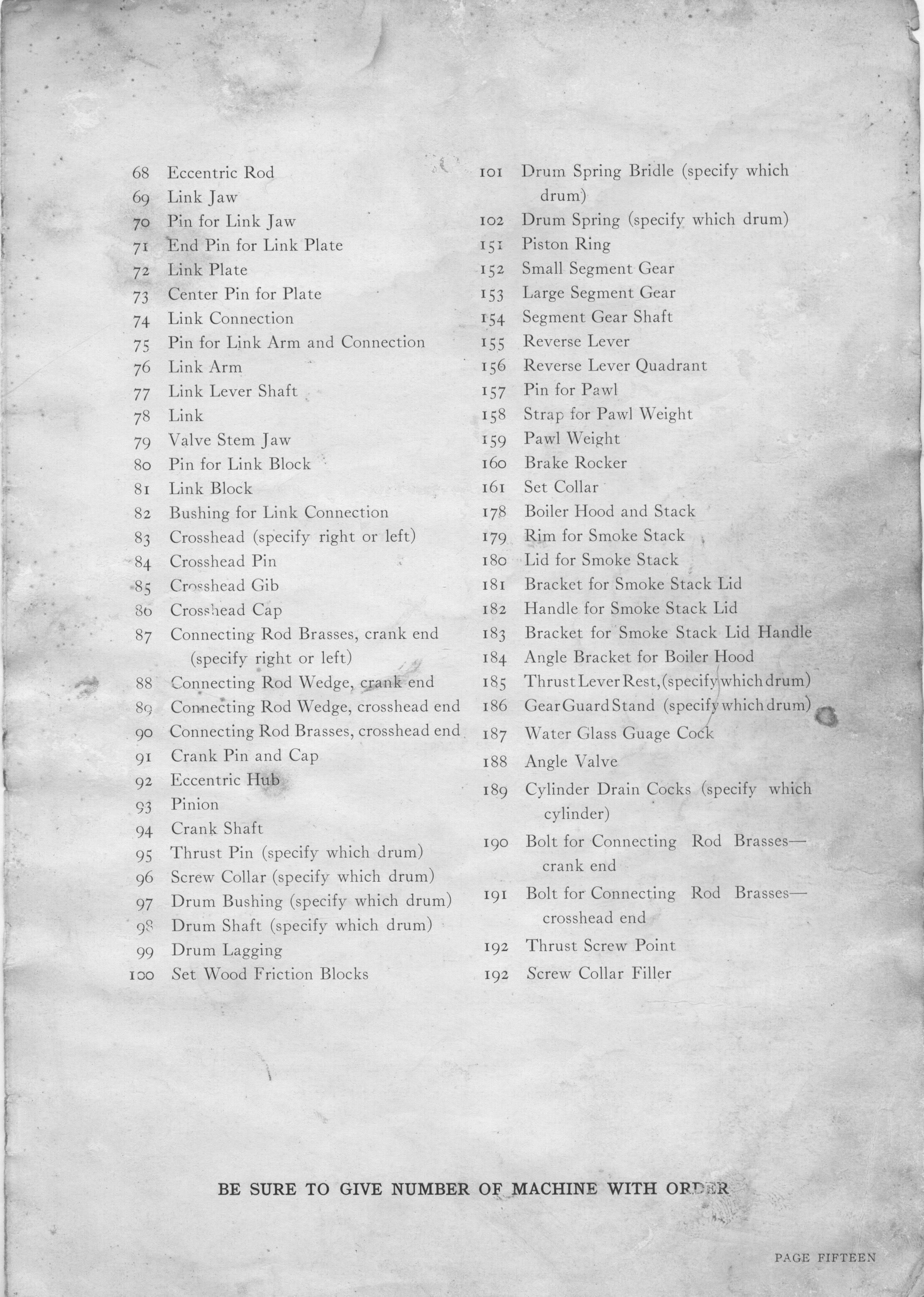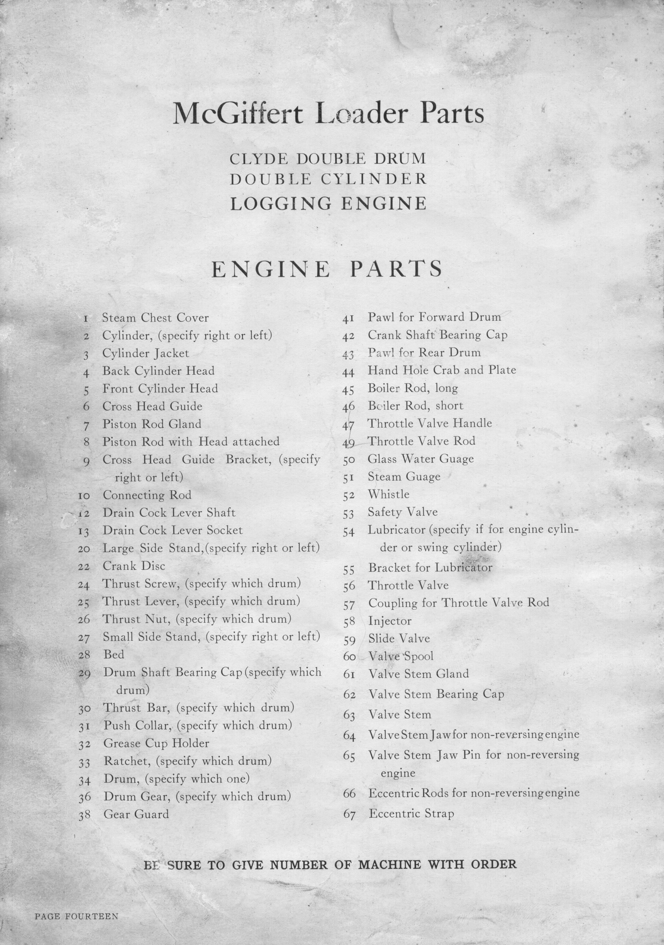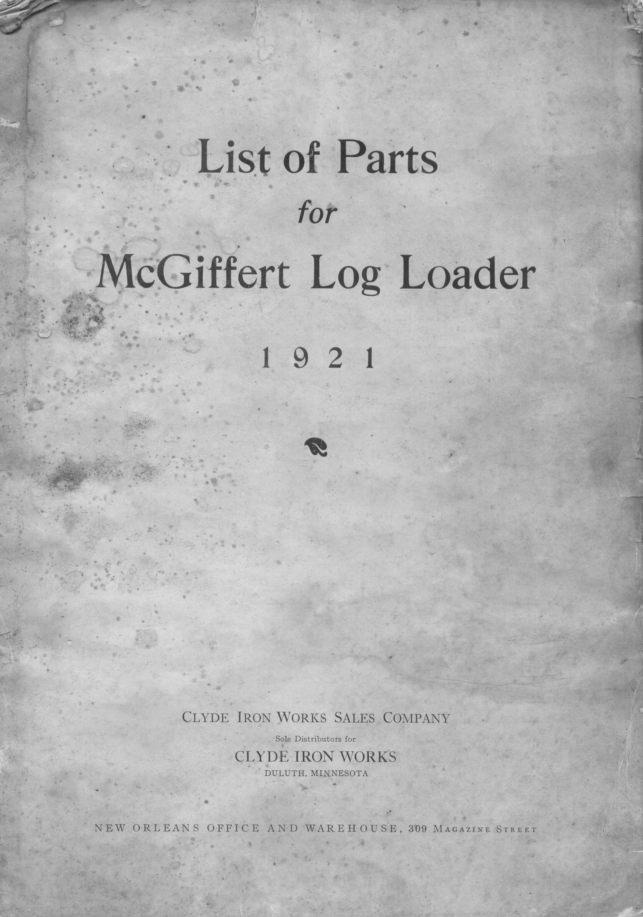 Clyde Iron Works Sales Company List of Parts for McGiffert Log LoaderEntry/Object ID