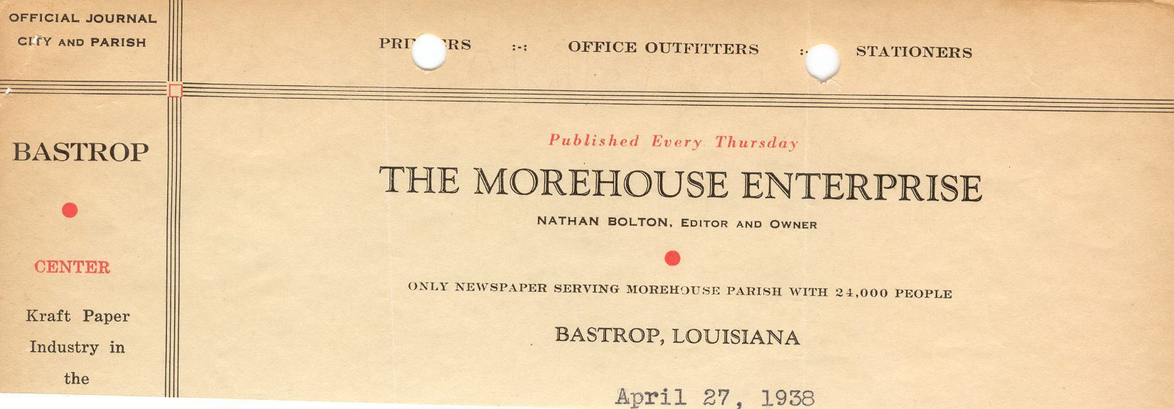The Morehouse Enterprise was an expanding company in Bastrop, Louisiana. Due to Kraft's expansion in Bastrop concerning the lumber industry, The Morehouse Enterprise was established to strengthen the Kraft paper industry.Collection