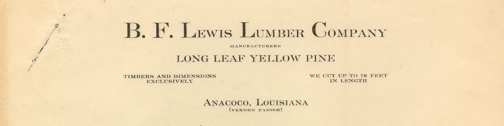 B.F. Lewis Lumber Company began operations in Vernon Parish. The company only worked exclusively with timber and dimensions.Collection