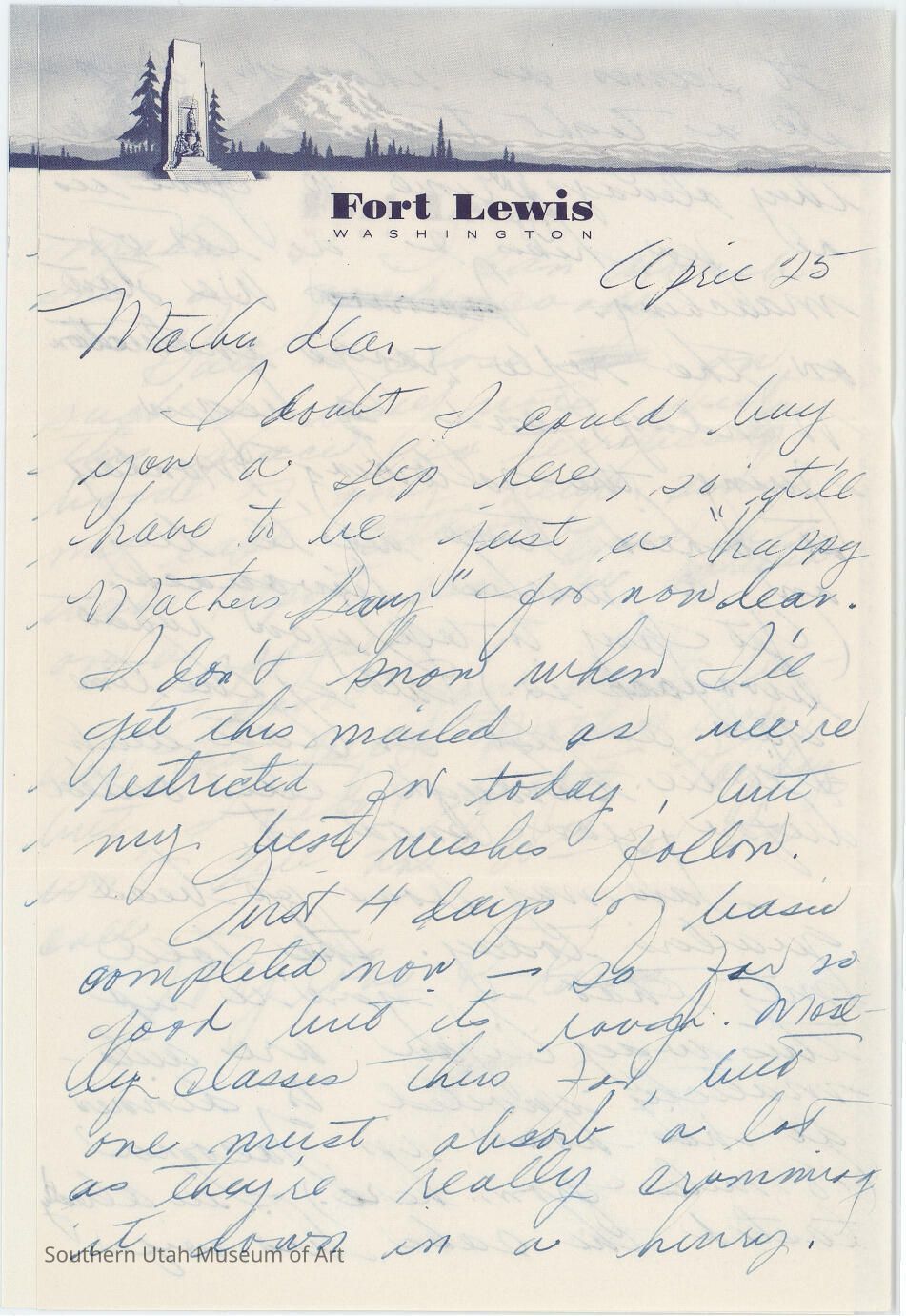 A letter from Jim Jones to his mother Thelma Jones, written while he was livinging Washington state. Thelma Jones wrote on the front of the letter: "Mother's Day Letter."