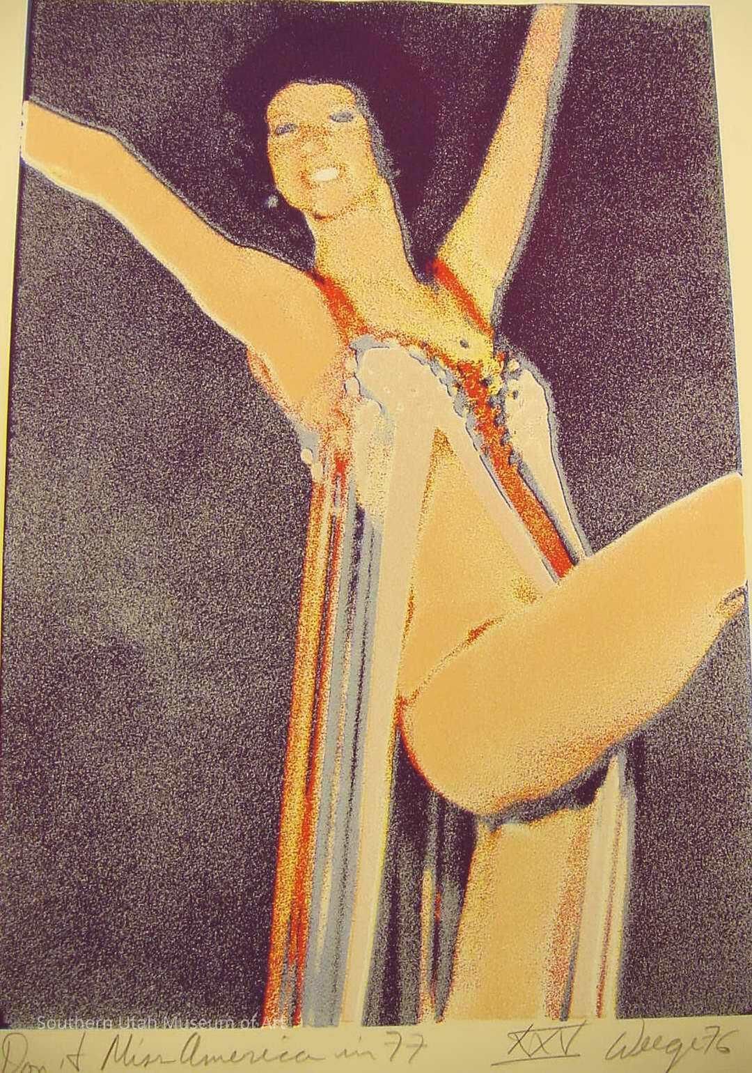 William Weege was born in Milwaukee, Wisconsin in 1935. He attended the University of Wisconsin to study engineering. Weege later got into printmaking and returned to UW to formally study this medium. In 1970, he represented the US at the Venice Biennale, even leading a printing workshop there. During the Vietnam War, Weege openly expressed political themes through his art. However, after this period, his art style shifted to abstract works. This is a colorful print of a lady posing or dancing. Therefore, it is easy to see that this print was before his shift to abstraction. This piece doesn’t scream political but does have political undertones to it, particularly since it was made during the extravagant celebrations surrounding America’s Bicentennial.