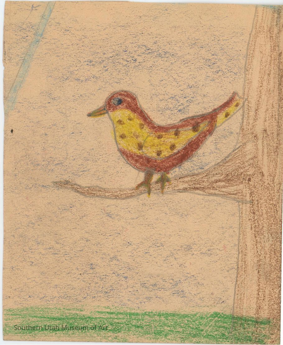 Crayon drawing of a bird completed by a young Jim Jones, most likely created while he was in elementary school.