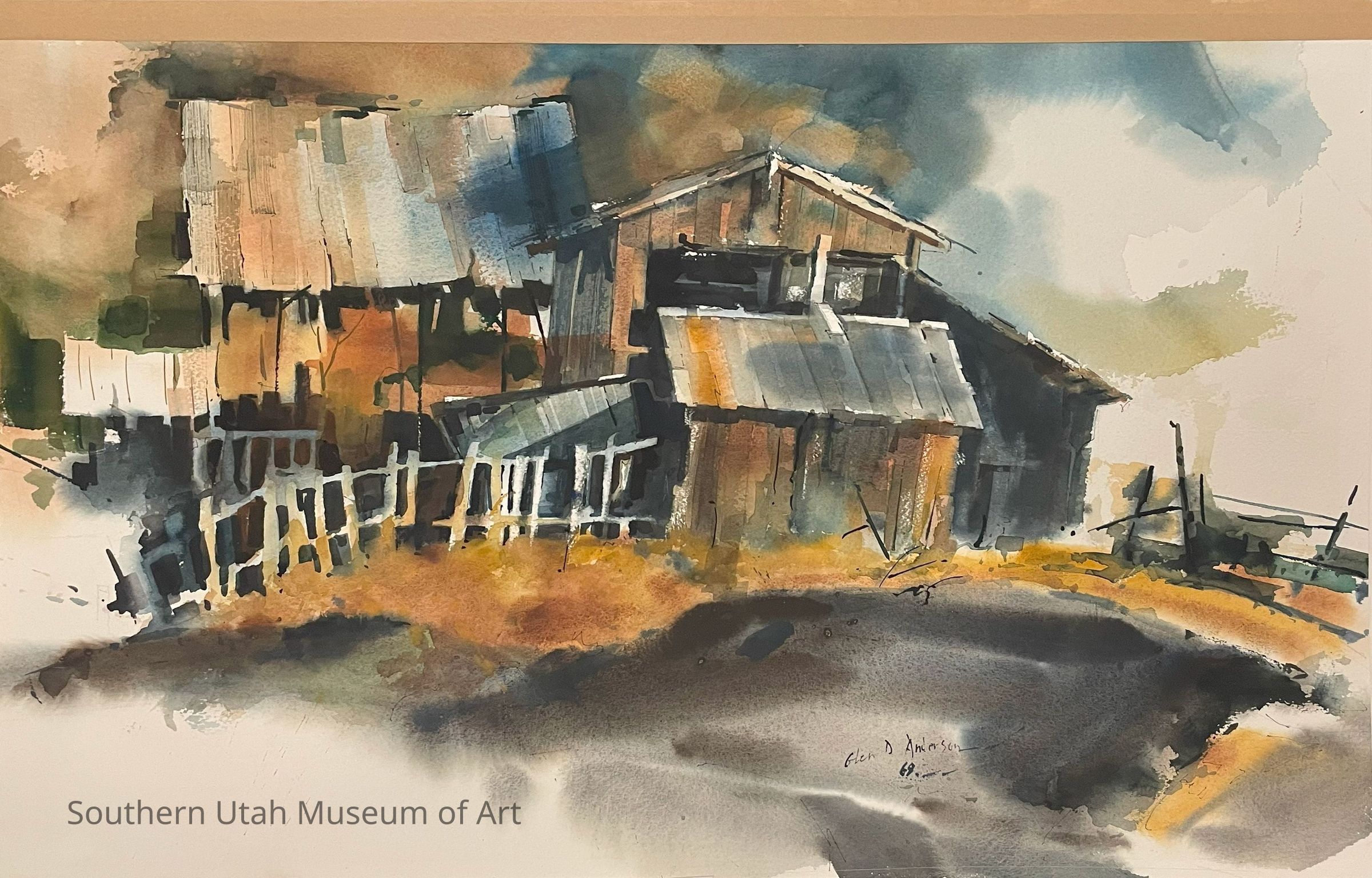 "Grafton Wash" is a watercolor painting created by artist and former SUU faculty member Glen Dale Anderson in 1969. The artwork depicts a wooden barn and fence.Collection