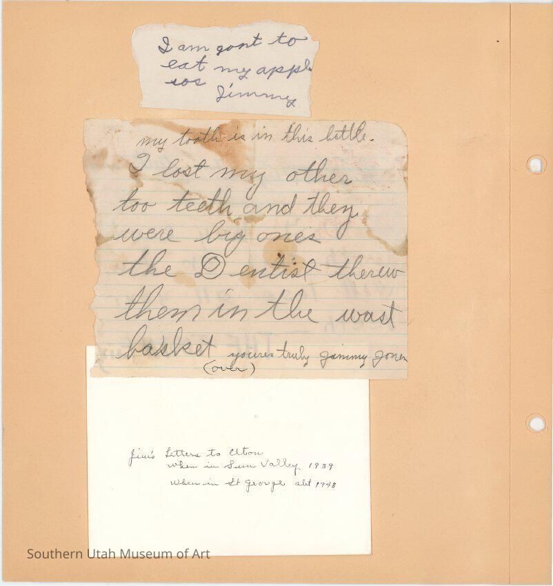 "Jim's letters to Elton when in Sun Valley 1939, when in St. Geroge abt 1948."