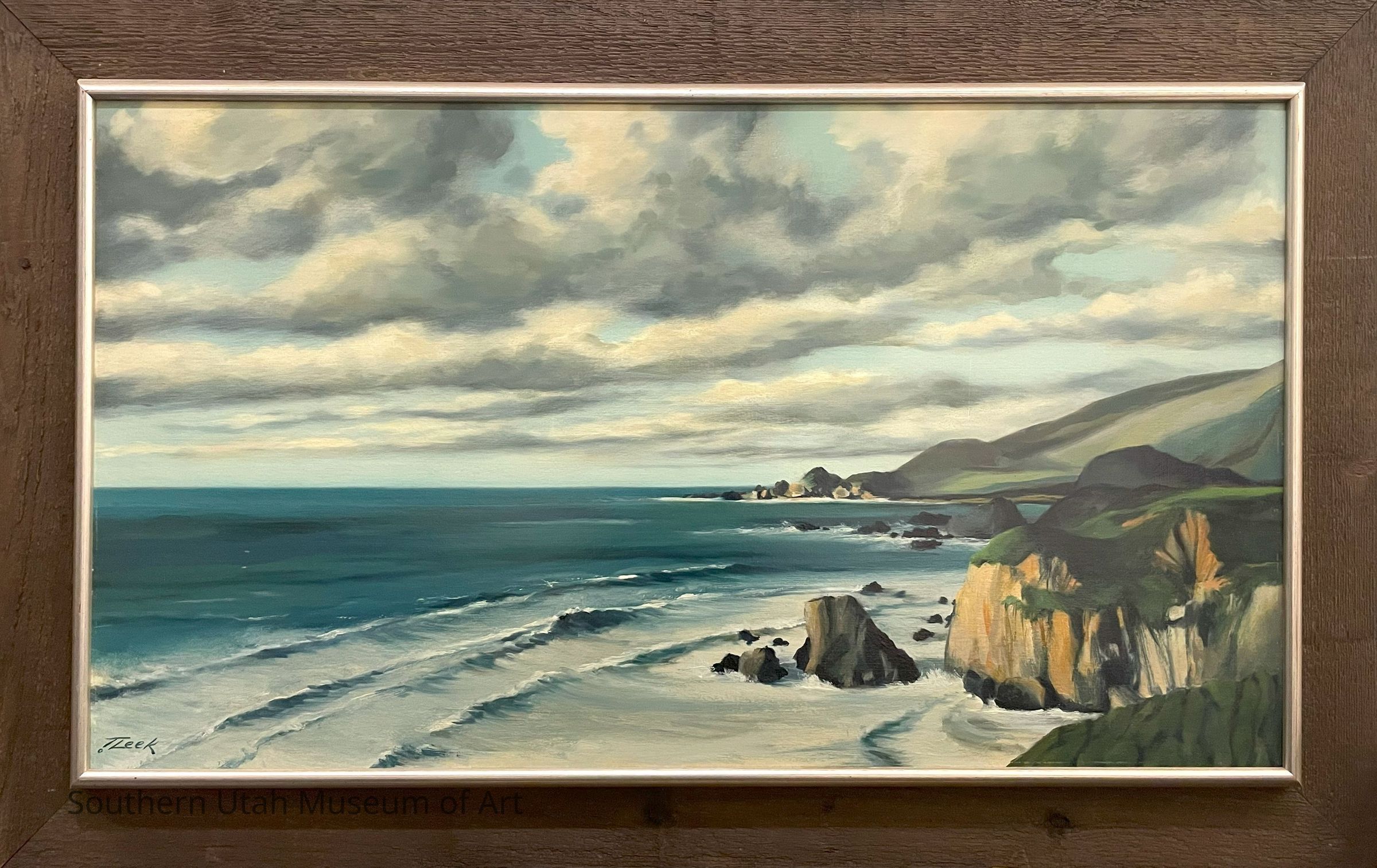"North of Monterey" is an oil on board painting by American artist and former SUU faculty Thomas Leek. This artwork was loaned to SUMA by the Iron County School District to be featured in the fall 2025 exhibition, Art for All: The Cedar City Art Exhibit, 1940-2008.Type of Painting