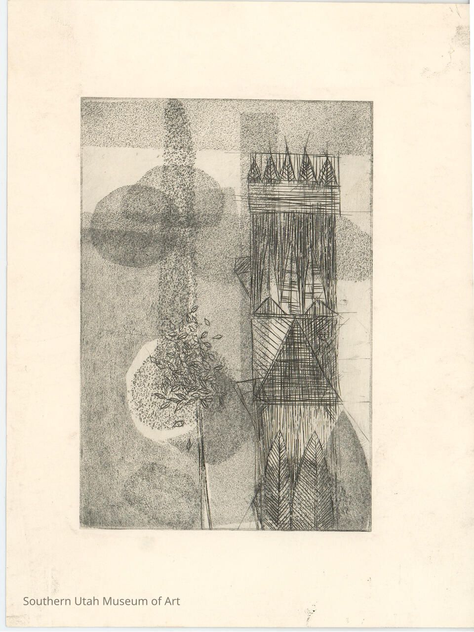 Print is part of a folder that was kept with the Jim Jones Scrapbook featuring artwork by students taught by Jim Jones.