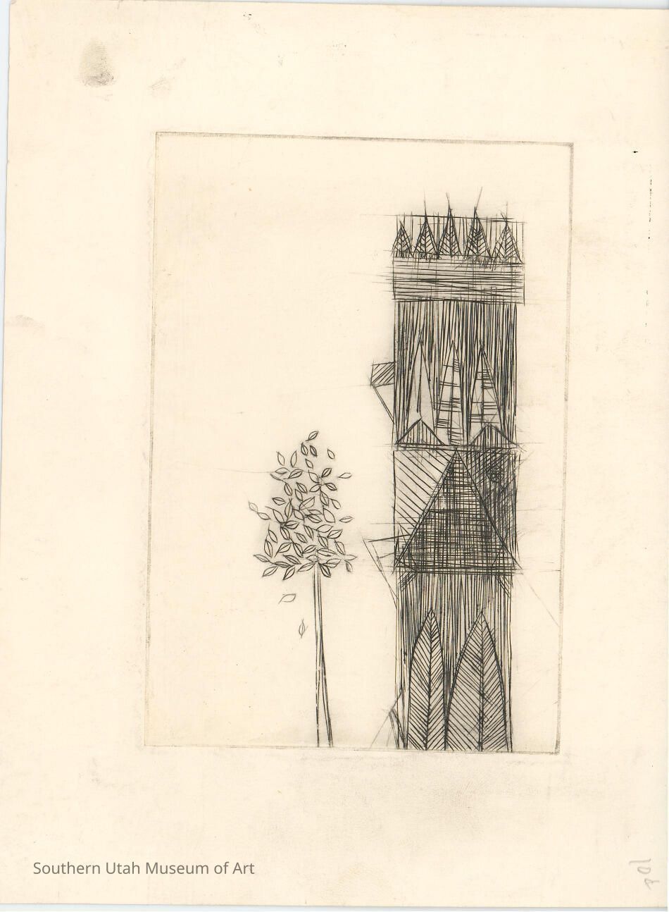 Print is part of a folder that was kept with the Jim Jones Scrapbook featuring artwork by students taught by Jim Jones.