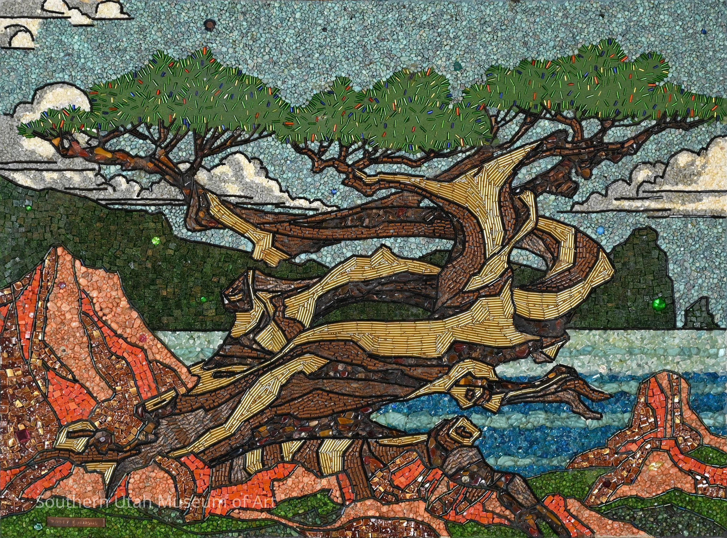 Mosaic featuring a juniper tree in a desert setting