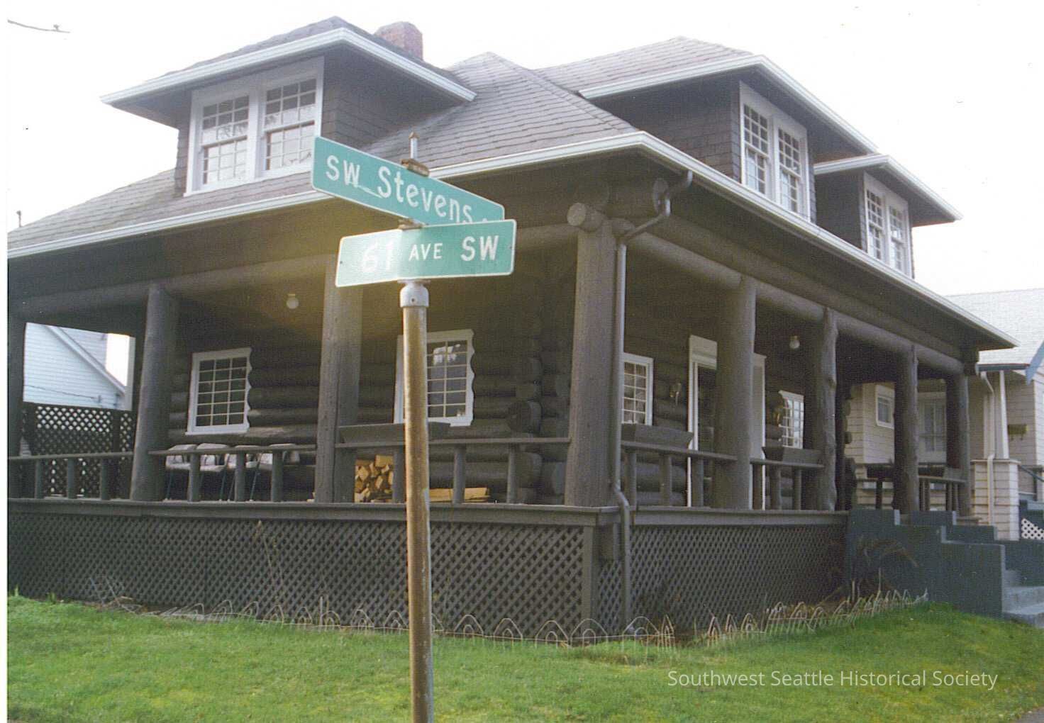 Color. Log House Museum from Corner of Stevens and 61st Ave SW.